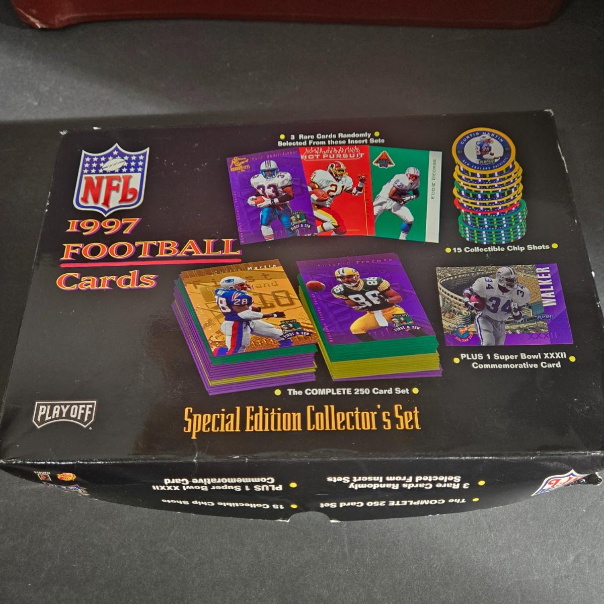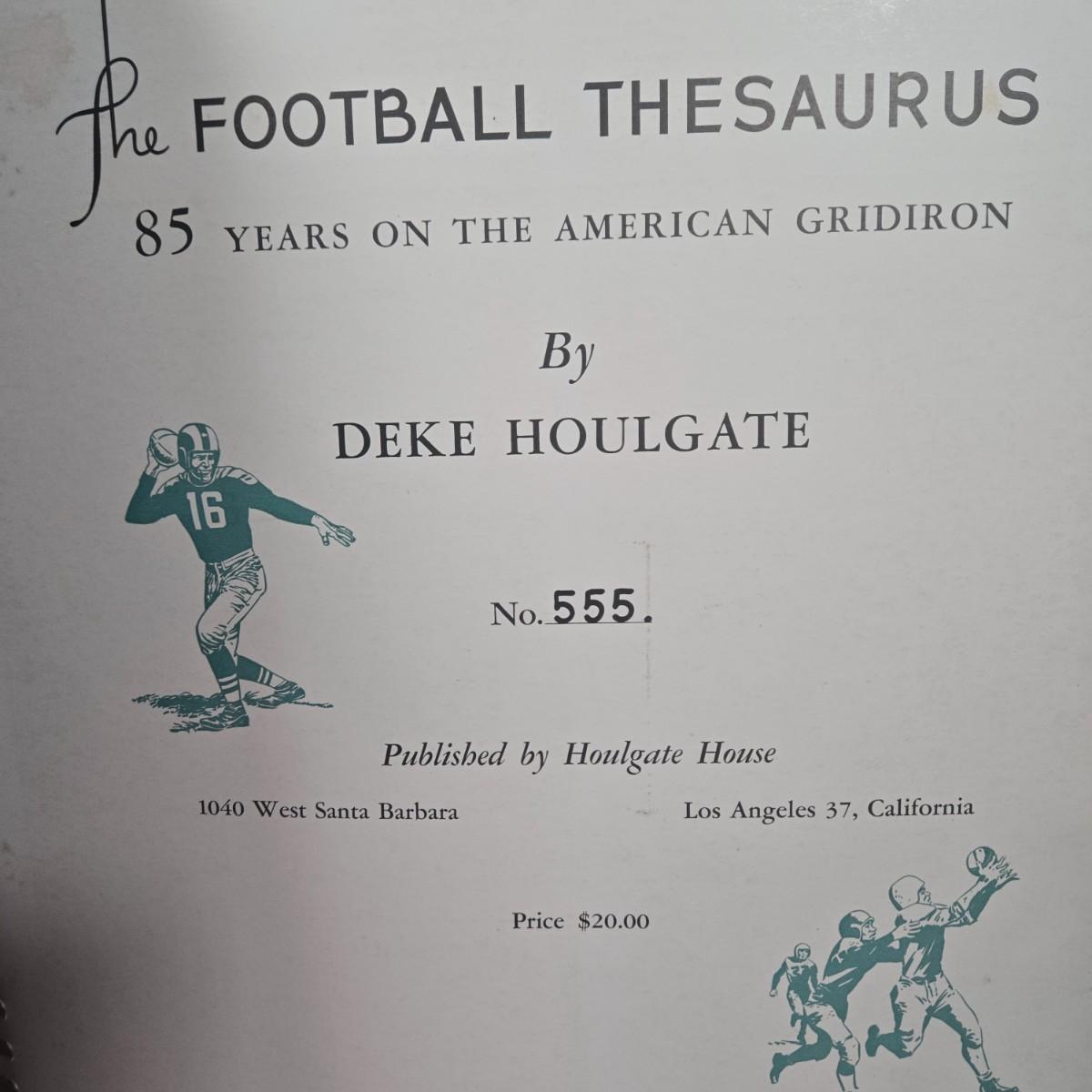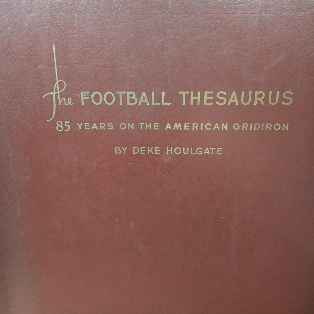 LOT 119Z: Numbered The Football Thesaurus by Deke Houlgate, Football Trading Card Binder with Plastic Protective Sheets, and Playoff NFL 1997 Football Cards Unopened Packs
