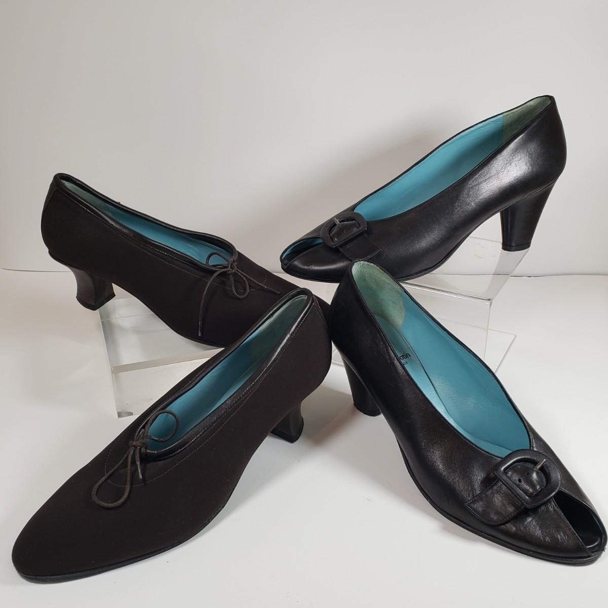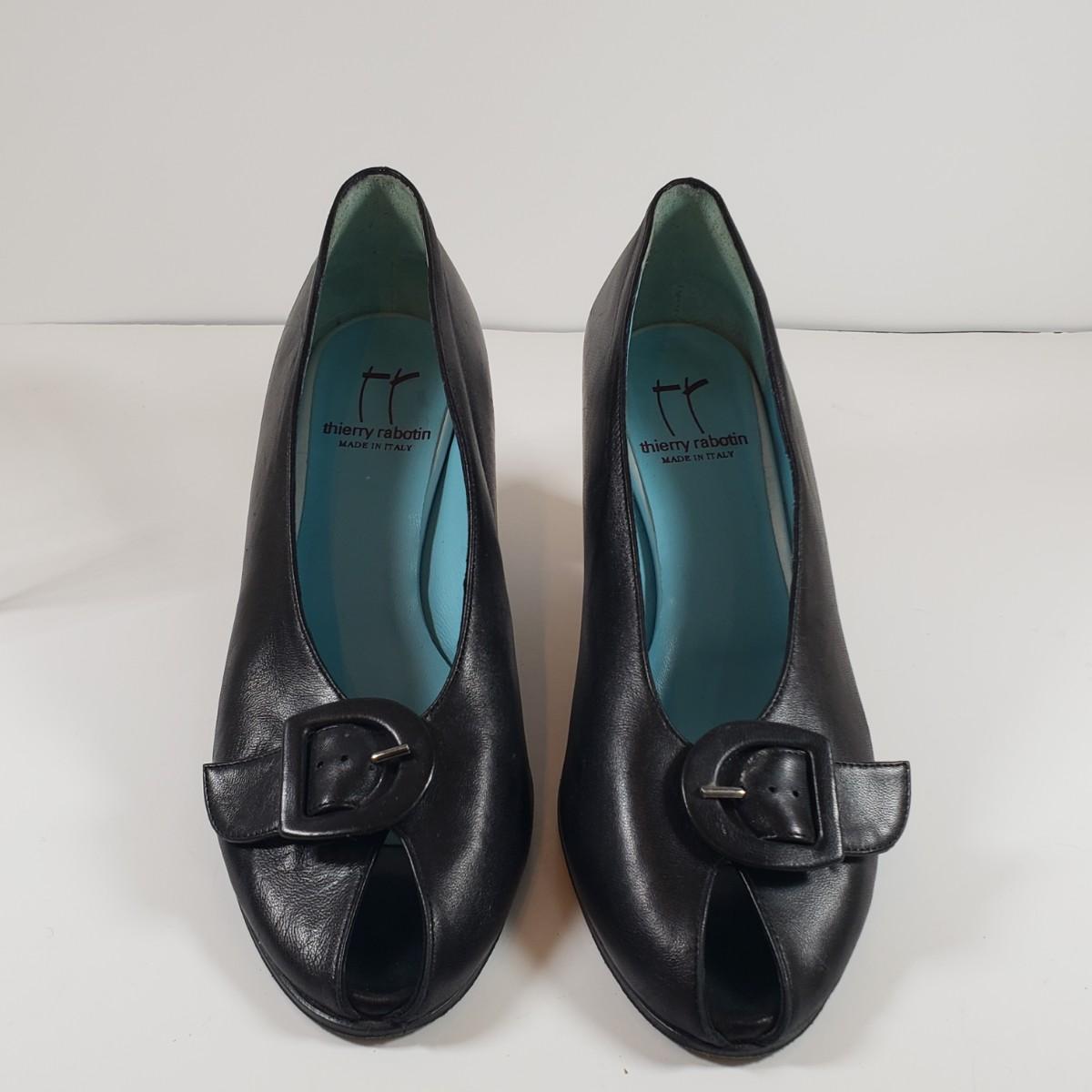 LOT 128M: Thierry Rabotin Stretch Heels & Peep Toe Leather Heels
