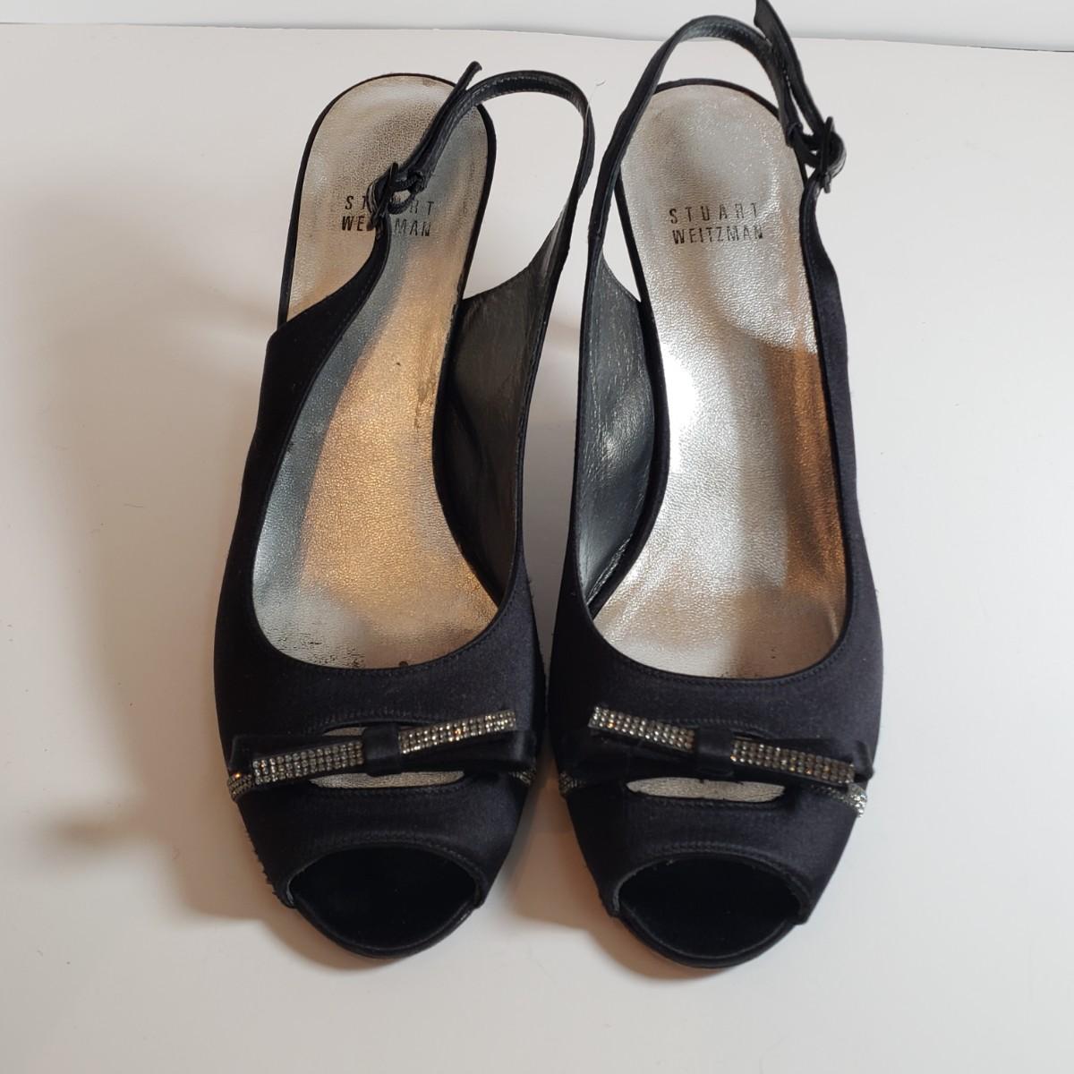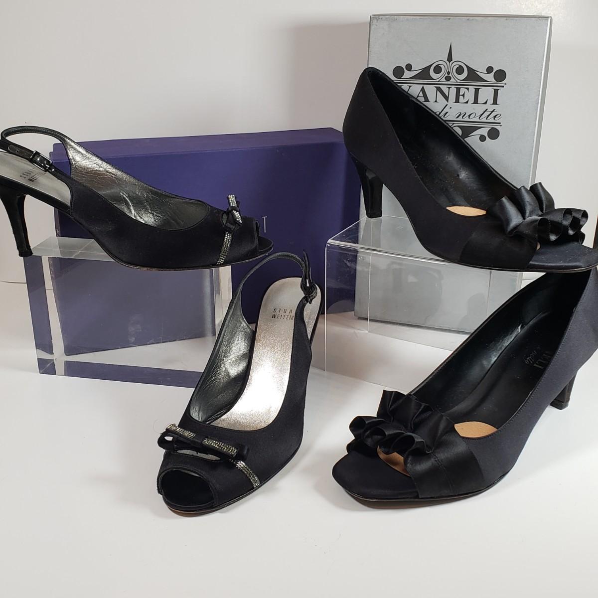 LOT 130M: Vintage Vaneli Black Satin Heels & Stuart Weitzman Rhinestone Black Satin Heels