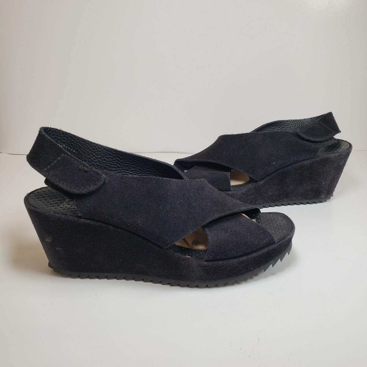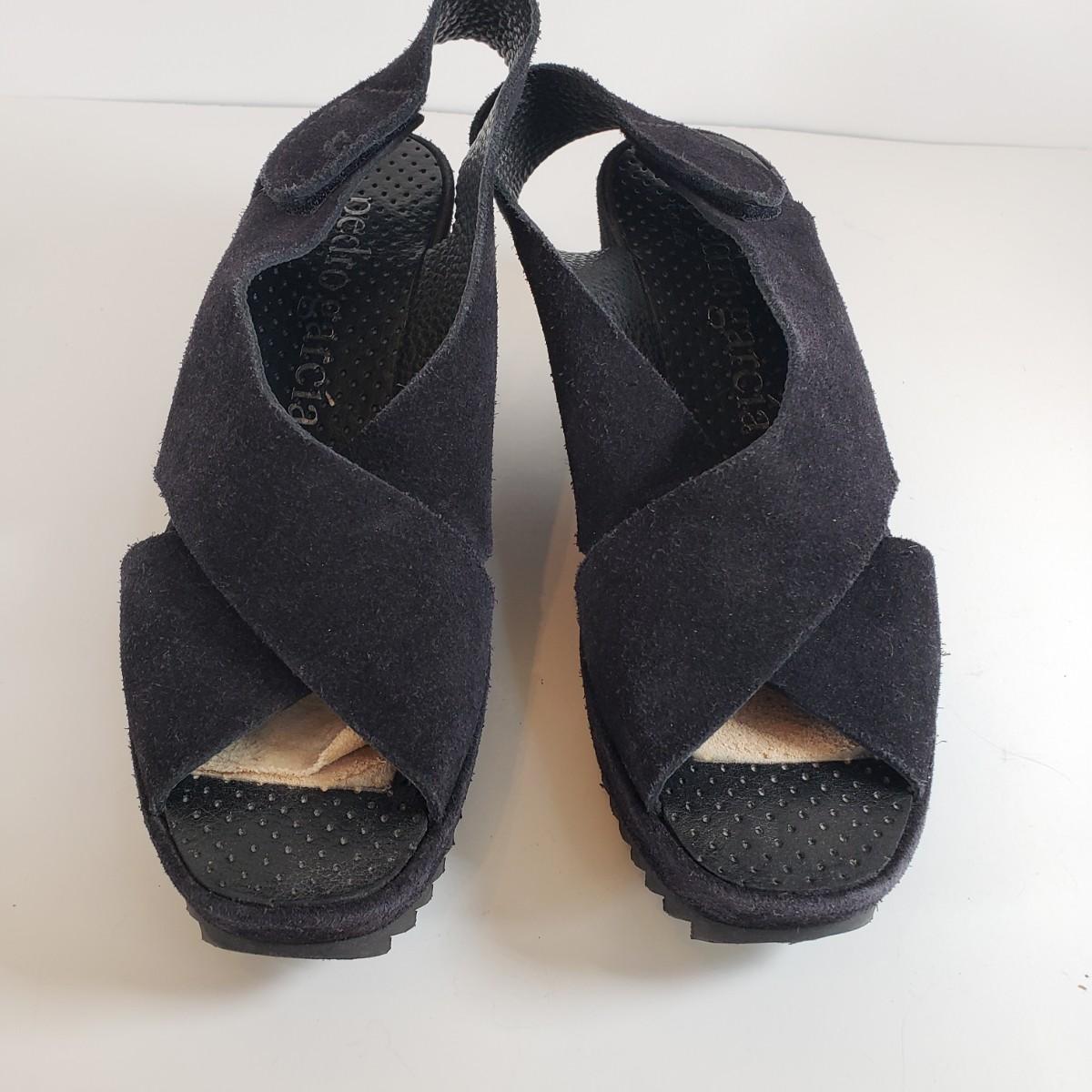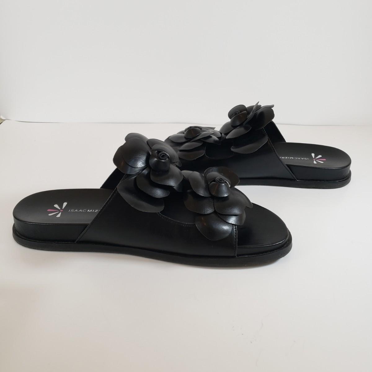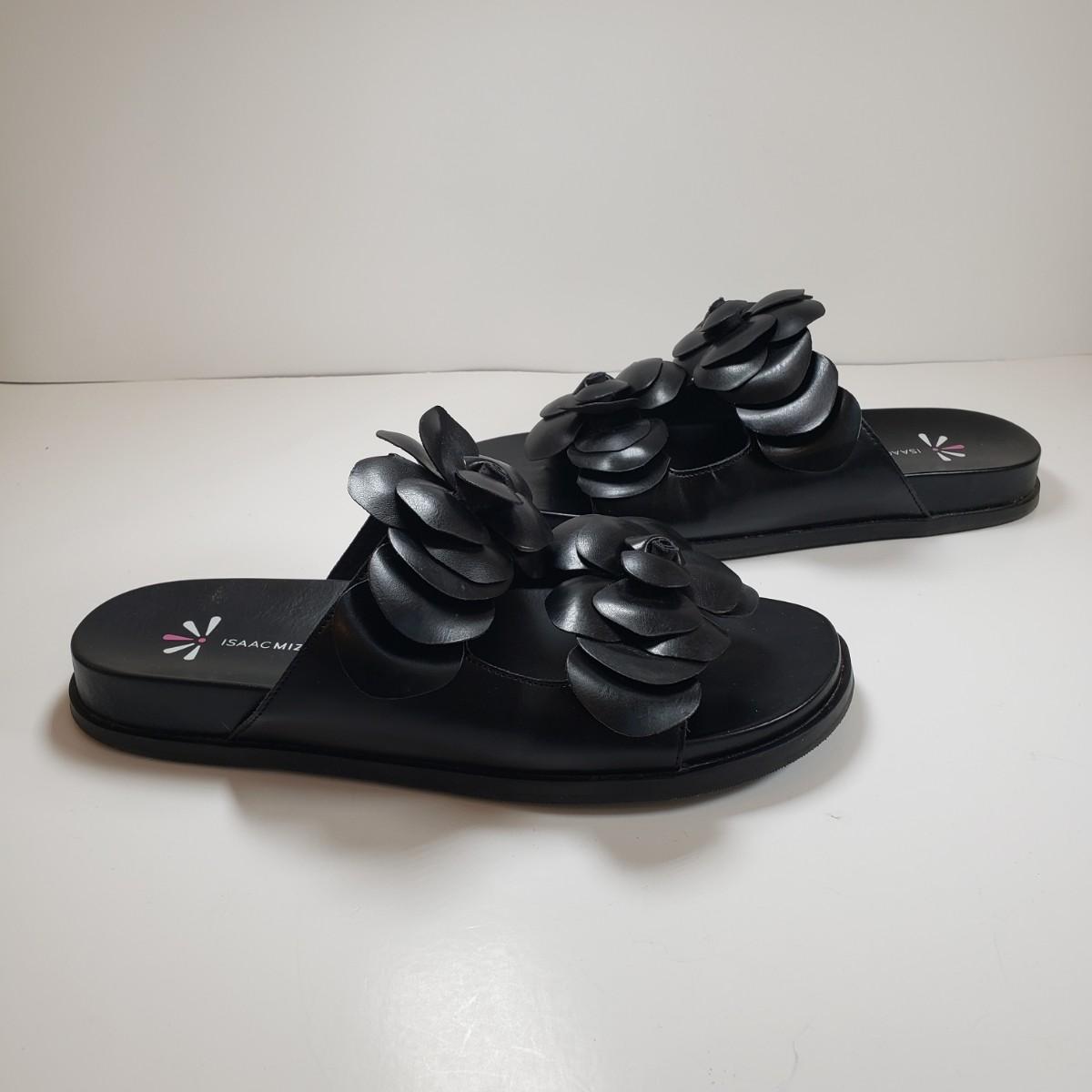 LOT 136M: Isaac Mizrahi Floral Slides & Pedro Garcia Black Suede Wedge Sandals