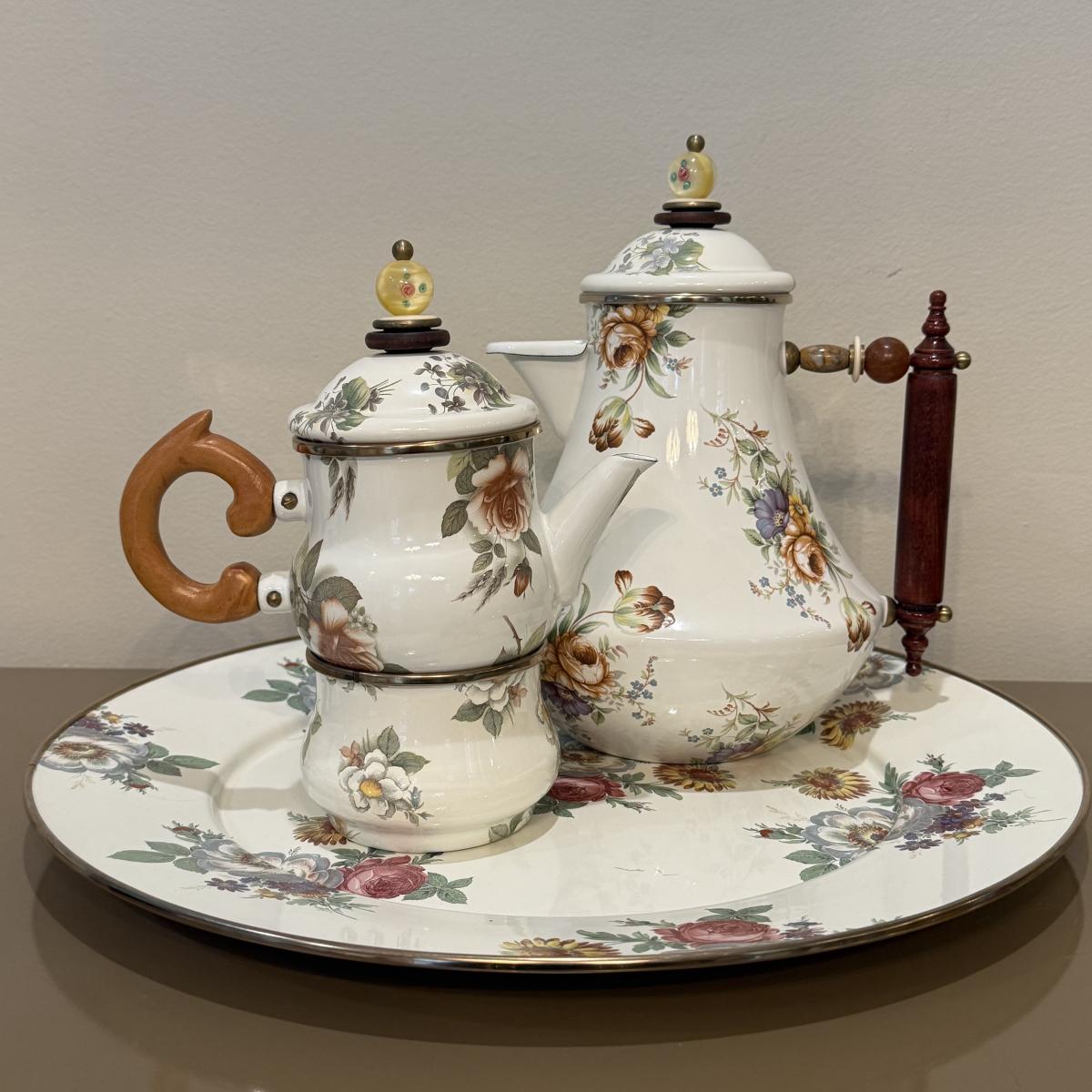 LOT 145F: MacKenzie Childs Collection: 1995 Tray & Teapot w/ 1983 Coffee Warmer