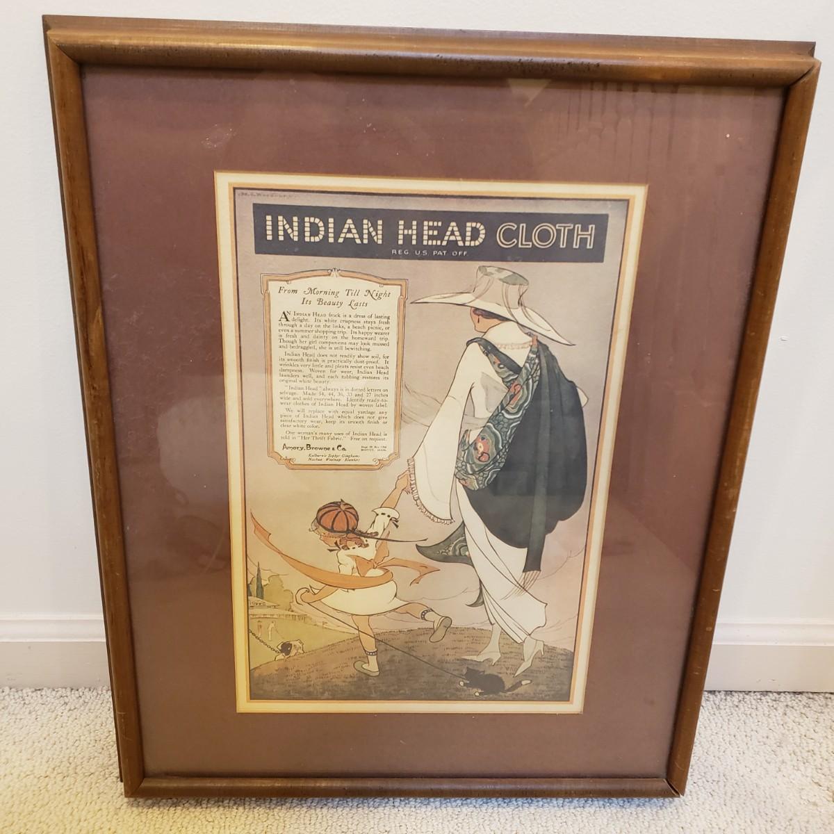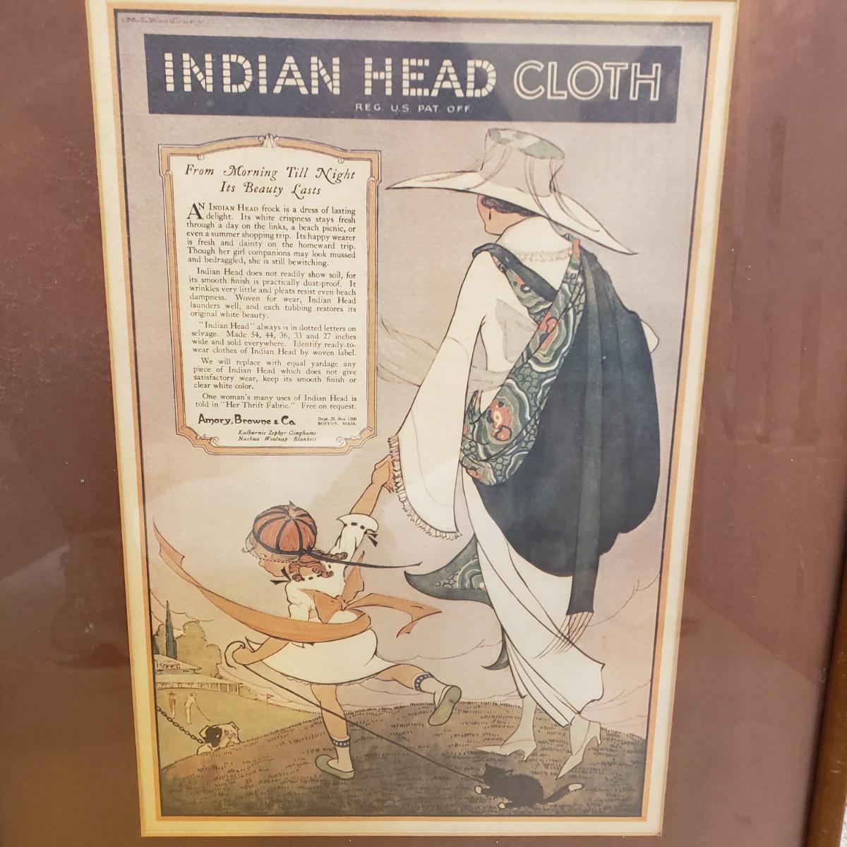 LOT 160M: Indian Head Cloth Framed Advertisement Print by Marjory C. Woodbury