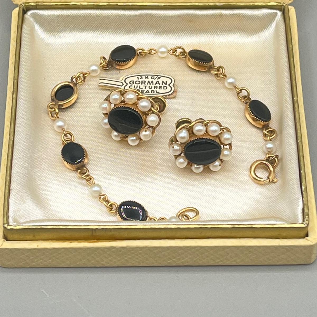 LOT 2: Vintage 12K Gold Fill Gorman Cultured Pearl Bracelet and Screwback Earrings Set