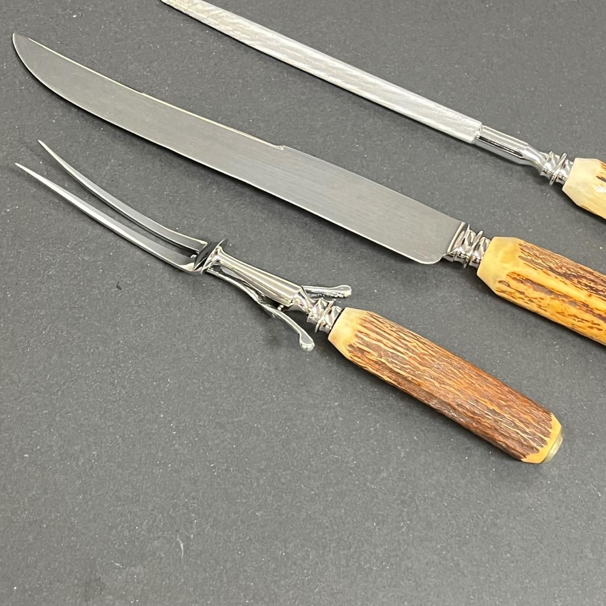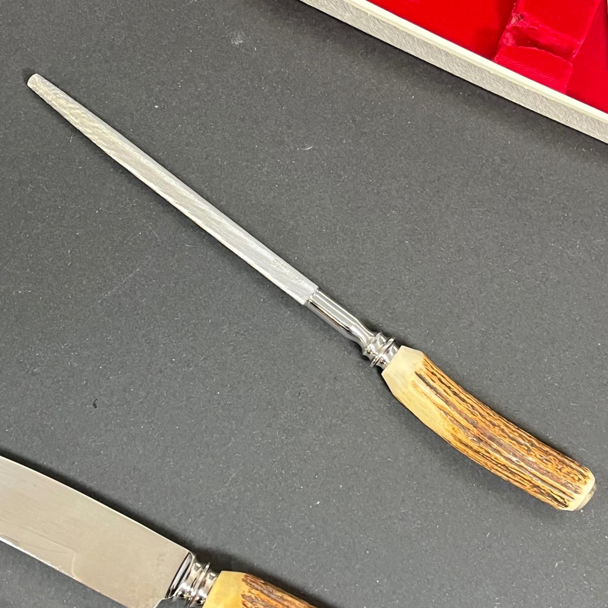 LOT 20: Picnic Basket and Vintage Stag Horn Cutlery Carving Set