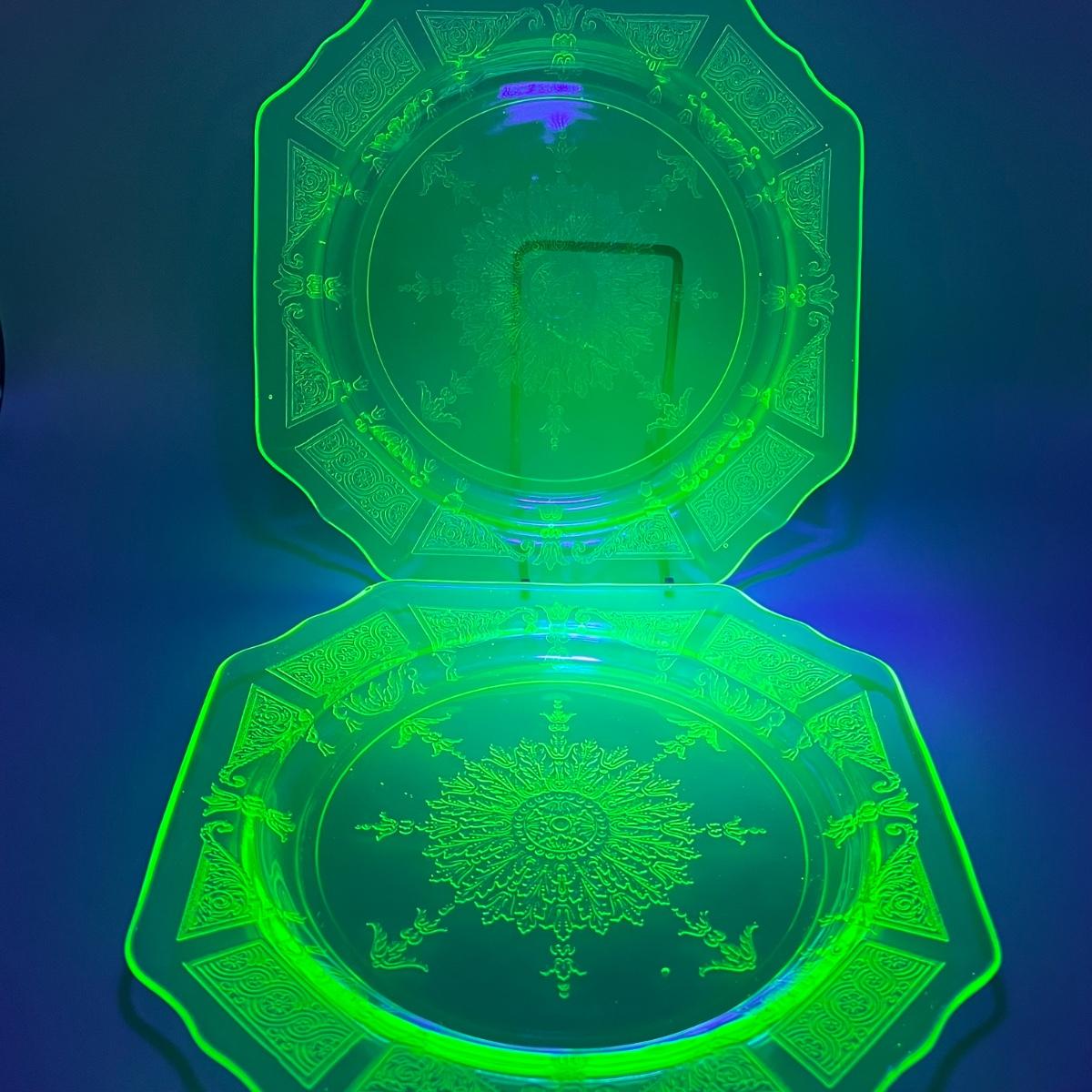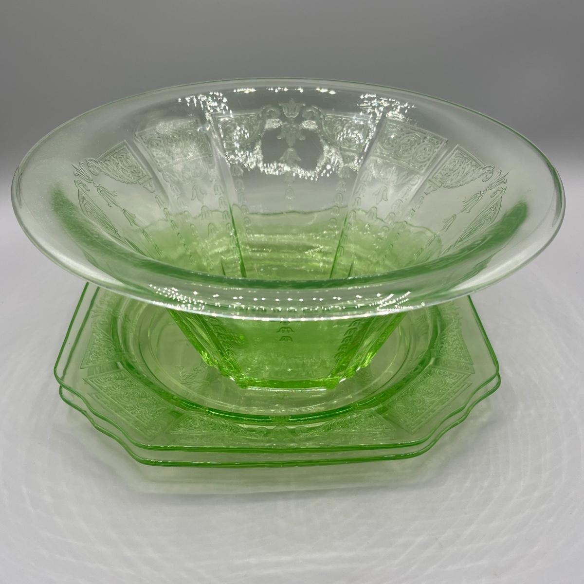 LOT 51: Large Vintage Uranium Glass Bowl and Plates
