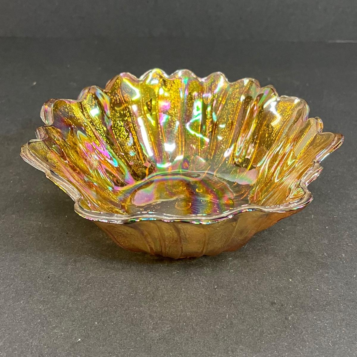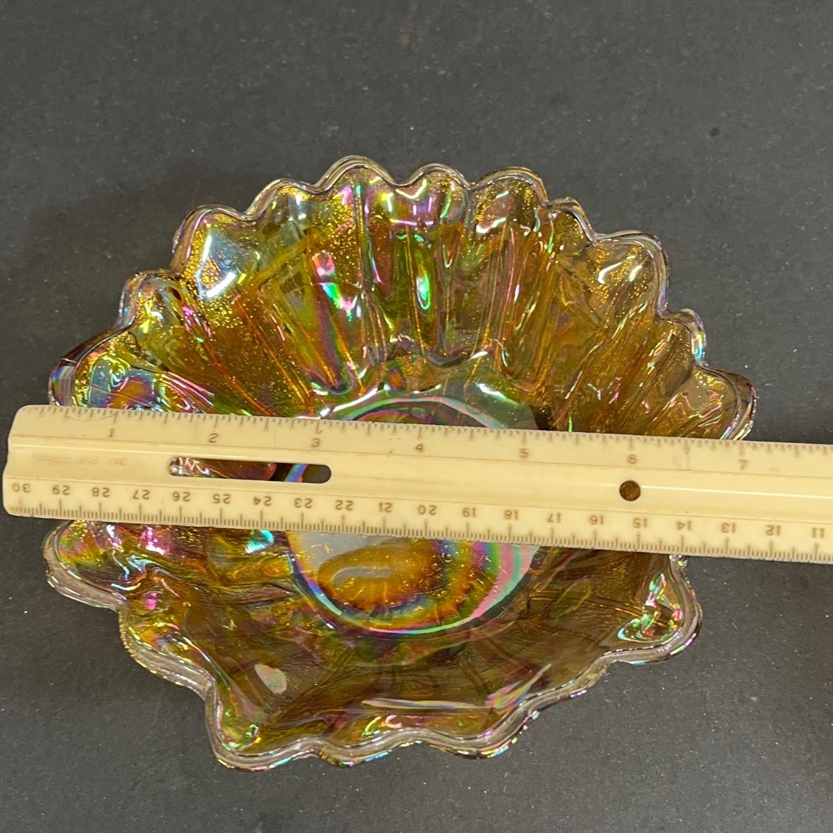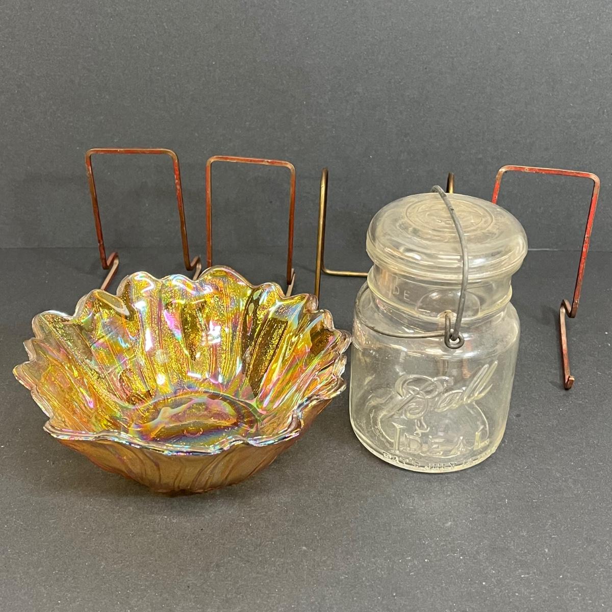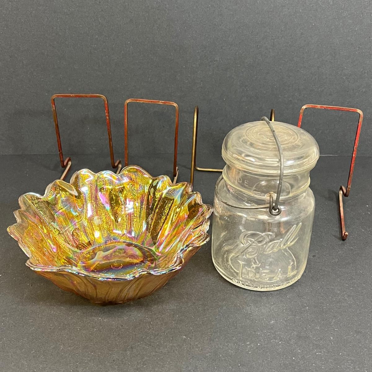 LOT 80: Vintage Carnival Glass Bowl, Ball Jar and Plate Stands