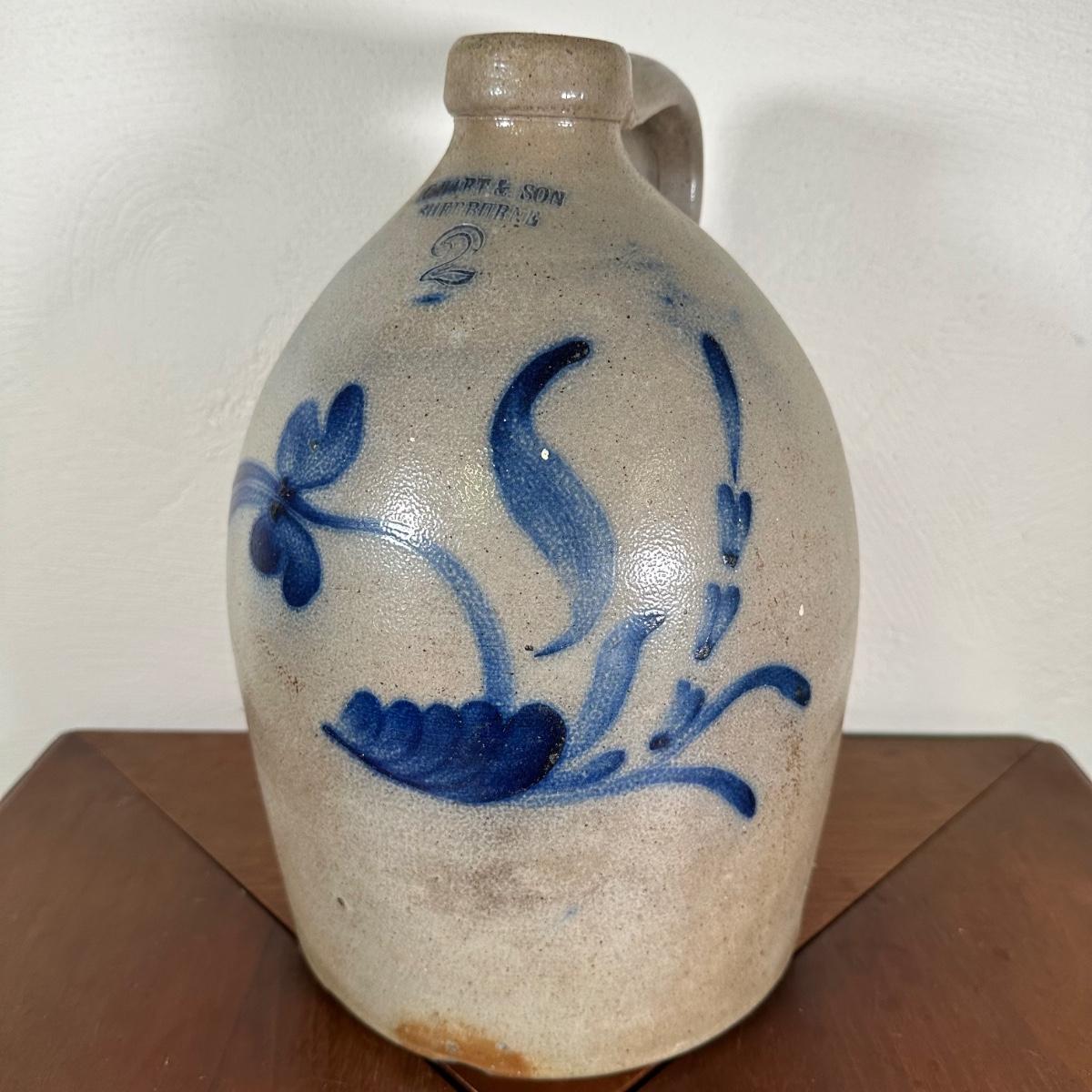 LOT 117B: C. Hart & Son Cobalt Blue Stoneware Jug Floral Motif