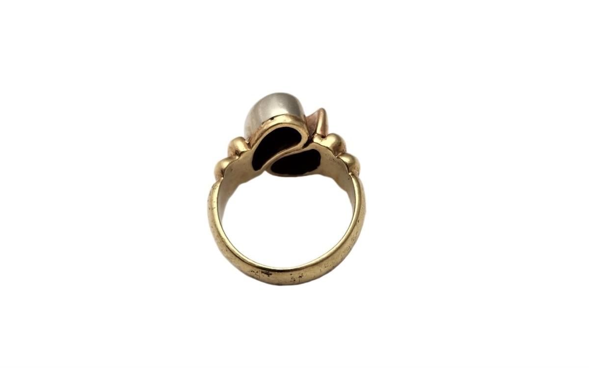 Lot #117D Vintage Modernist 14kt Gold Ring with Sterling Accent - Size 7