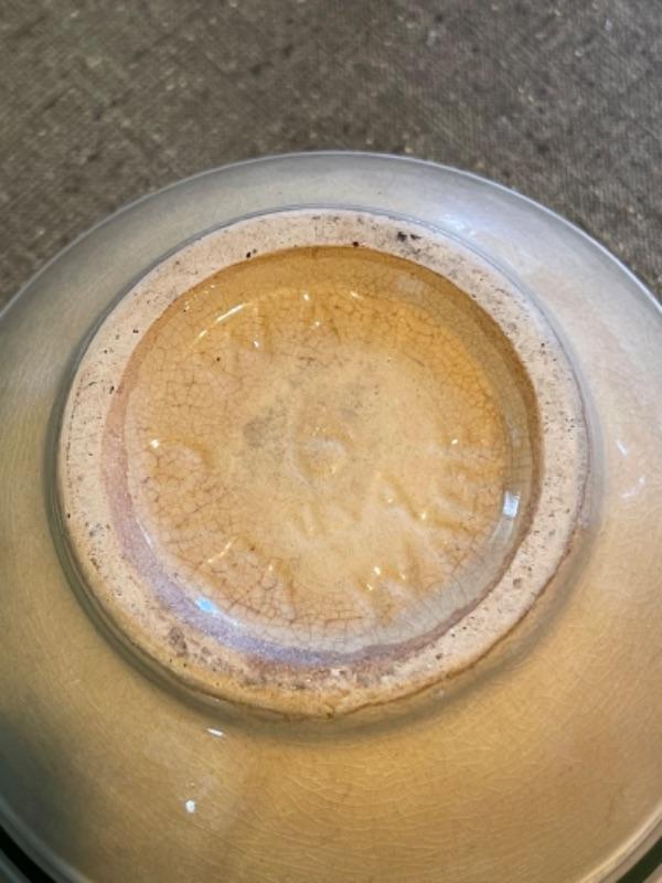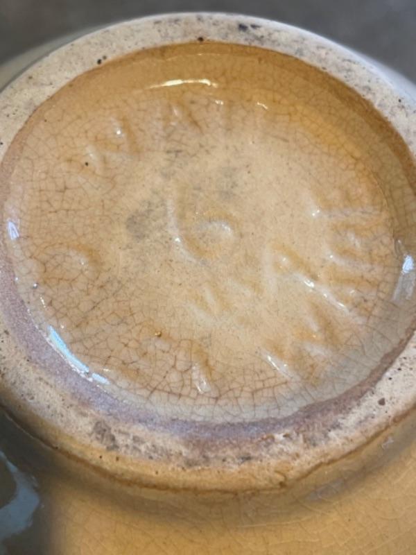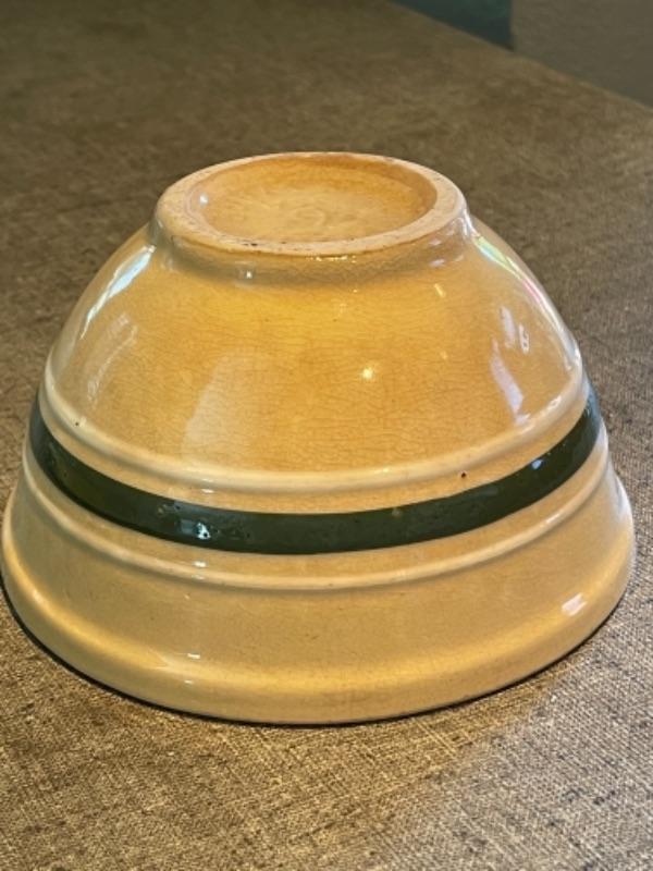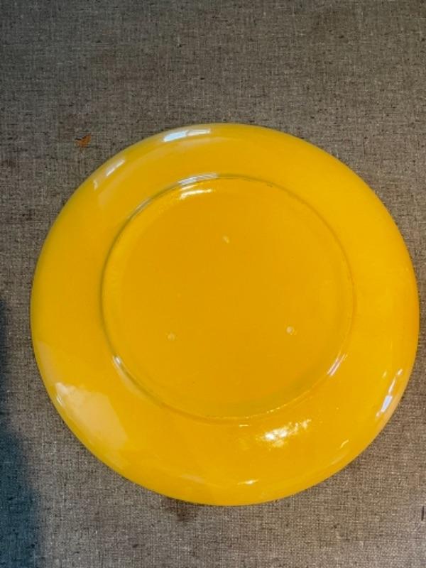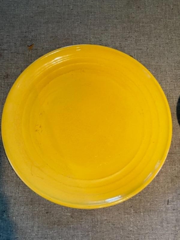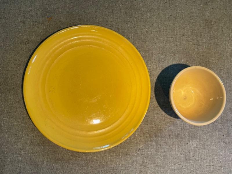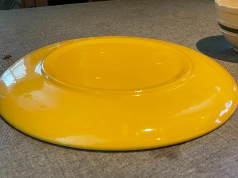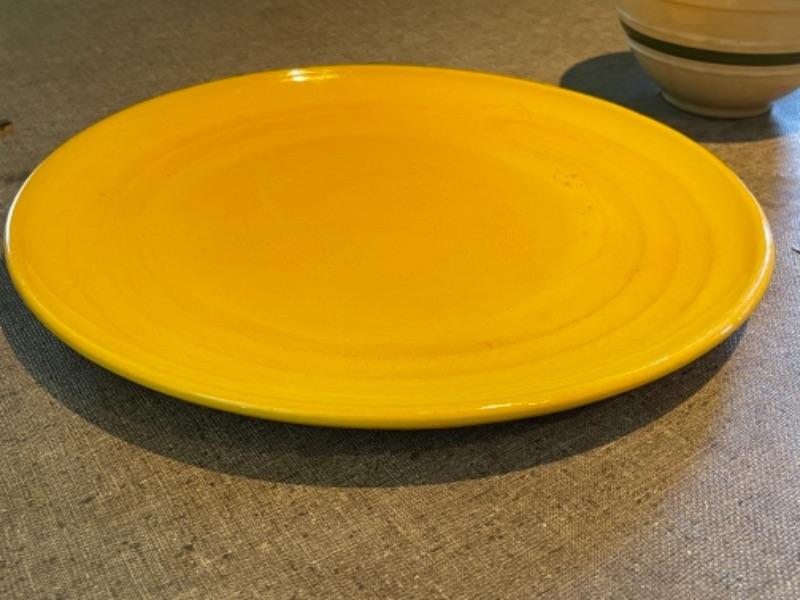 Lot 117K. Large vintage yellow pottery chop plate (Bauer or Pacific) and Watt Ovenware bowl--$60