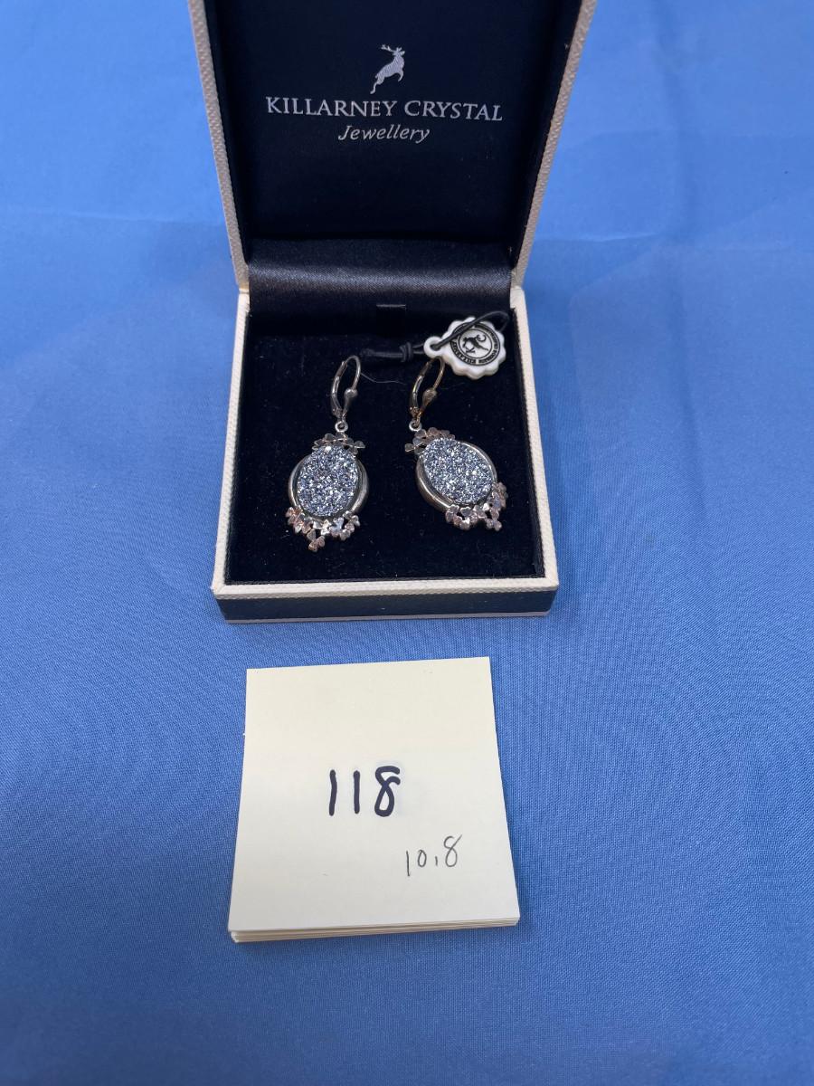 lot 118 Kilarny Crystal Ireland Sterling Silver Earrings