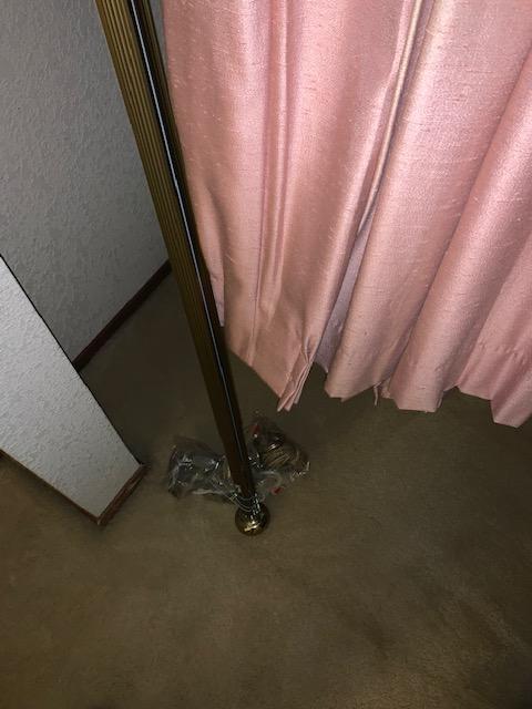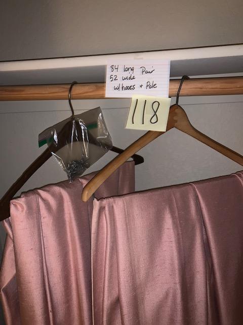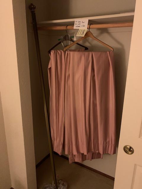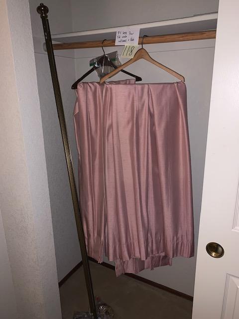 Pair of pink curtains 84" long x 52" wide with hooks and pole