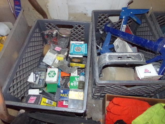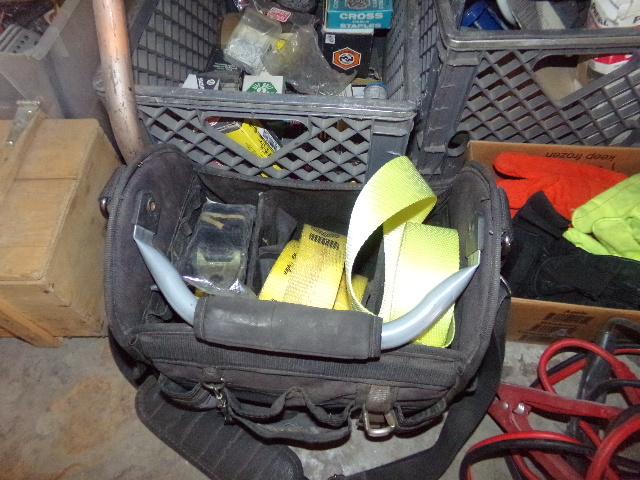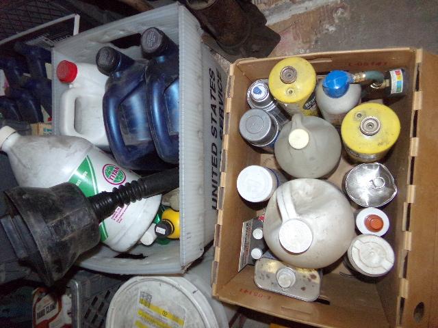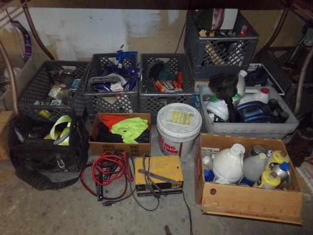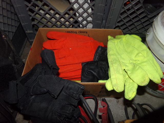 NUMEROUS ITEMS (CLEANING CHEMICALS, JUMPER CABLES, GLOVES)