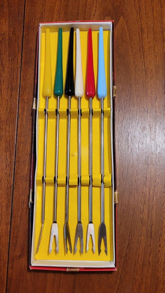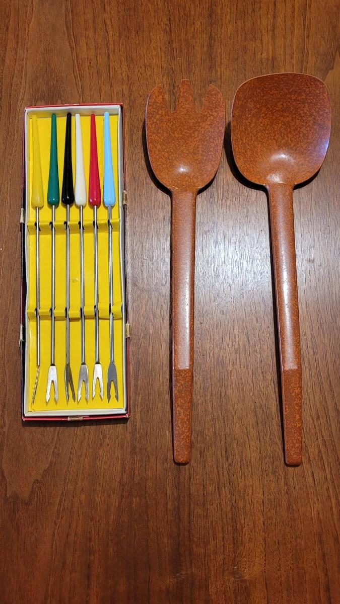 Lot 113: Mid Century Modern Fondue Forks and Plastic Serving Utensils