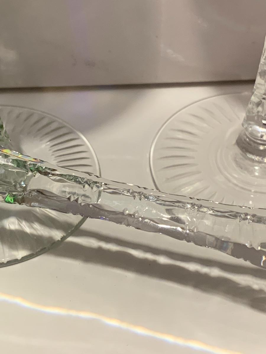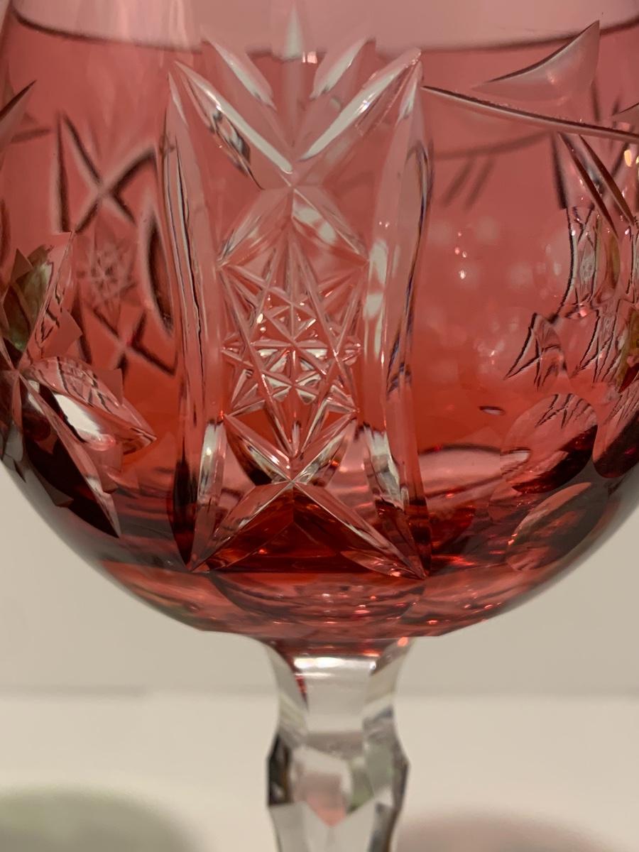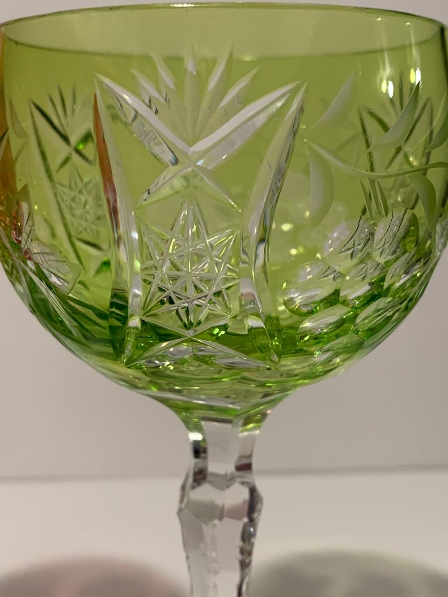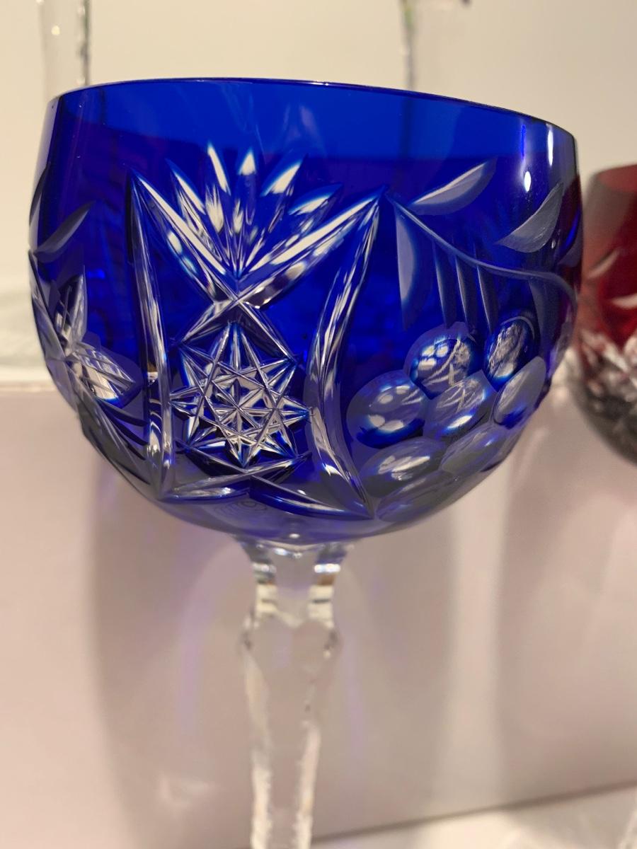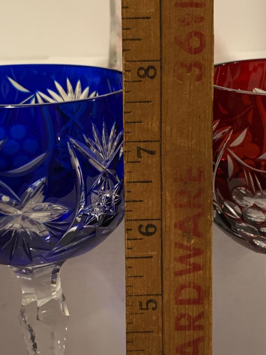 Beautiful set of 5 multicolored cut to clear stemware with notched stems fromGermany. Pretty grape and leaves pattern with a crystal-clear base. Just stunning. They have had minimal use if any. The crystal is nice and clear without any residue.
