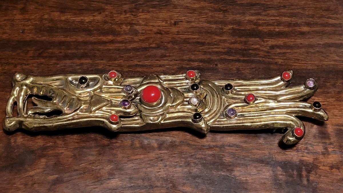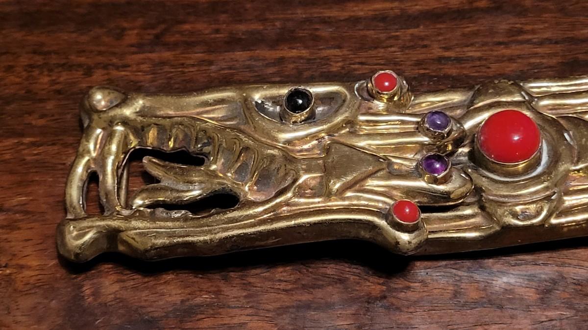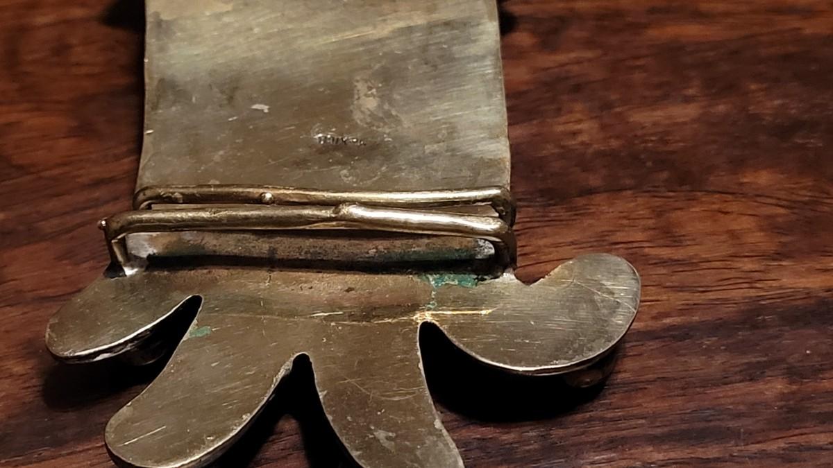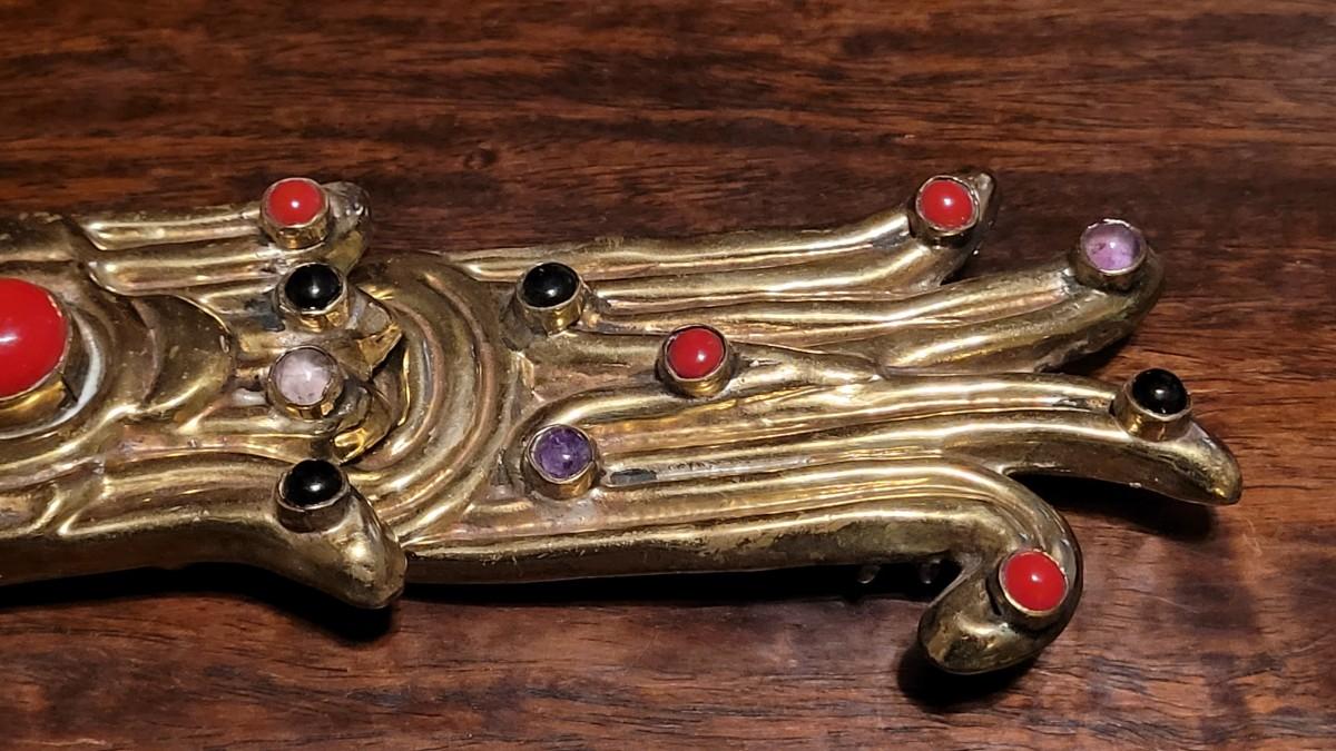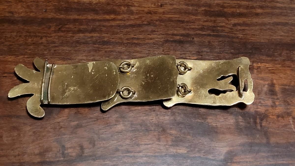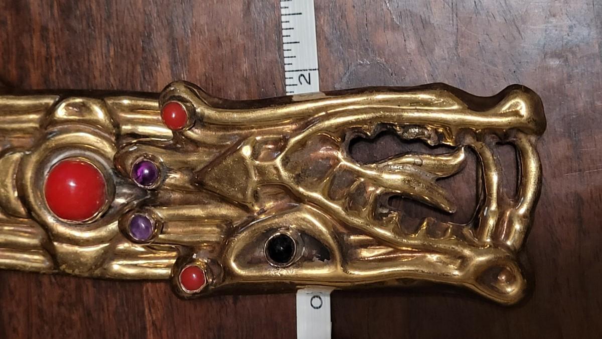 Lot 118:  Rare Vintage Extra Large Hinged Brass Alejibre Modernist Belt Buckle with Gemstones