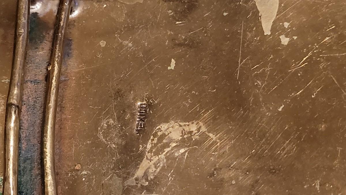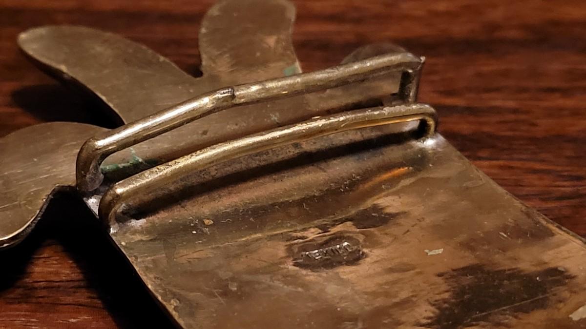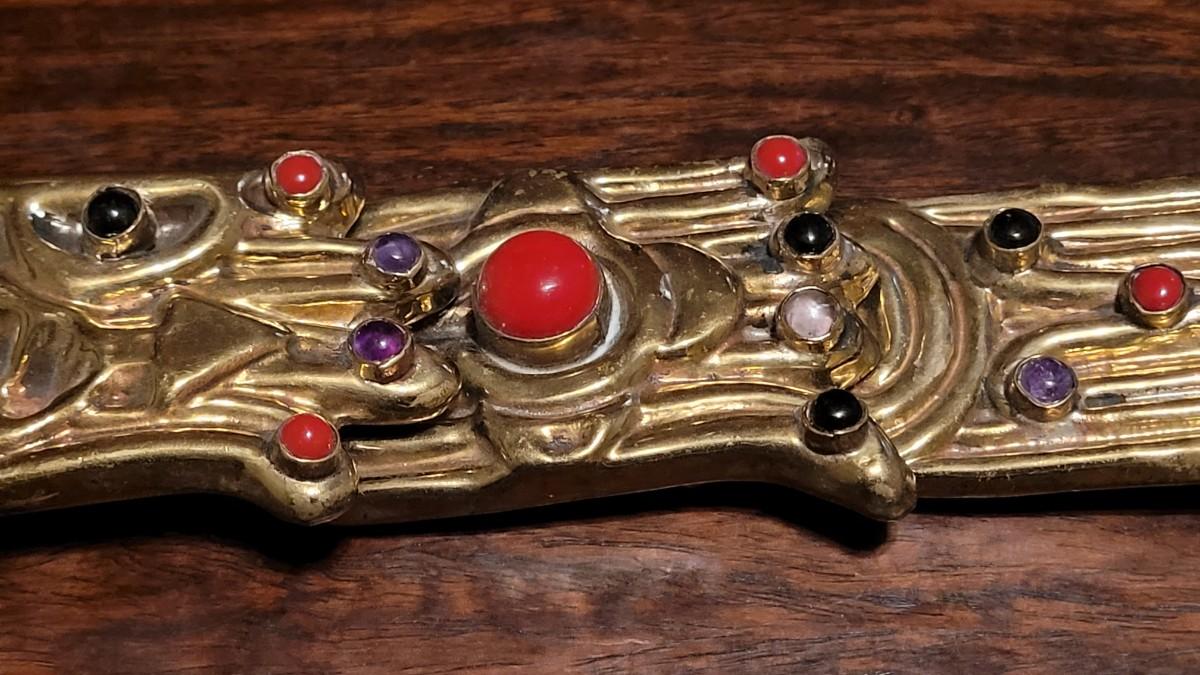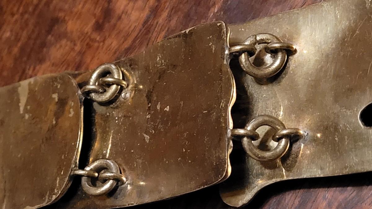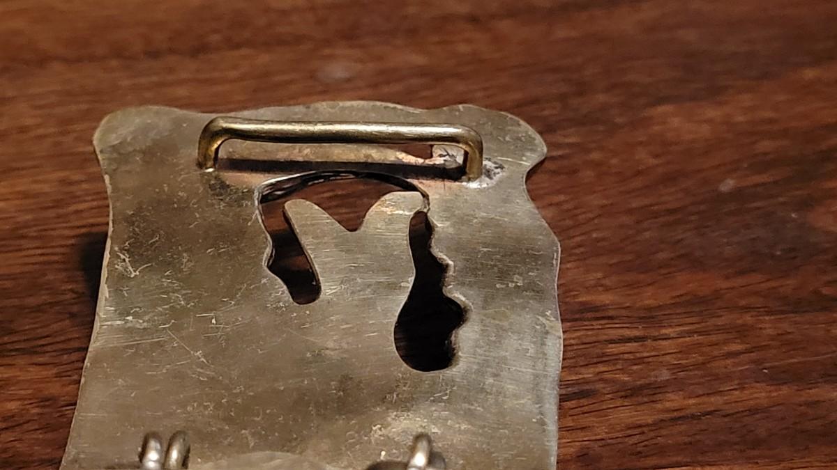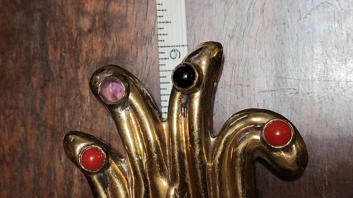 Lot 118:  Rare Vintage Extra Large Hinged Brass Alejibre Modernist Belt Buckle with Gemstones