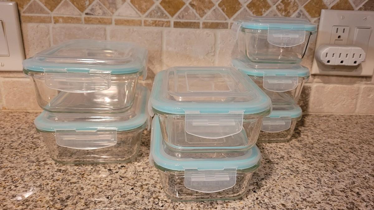 Lot 118: Glass Storage Containers with 4 Way Snap on Lids Set