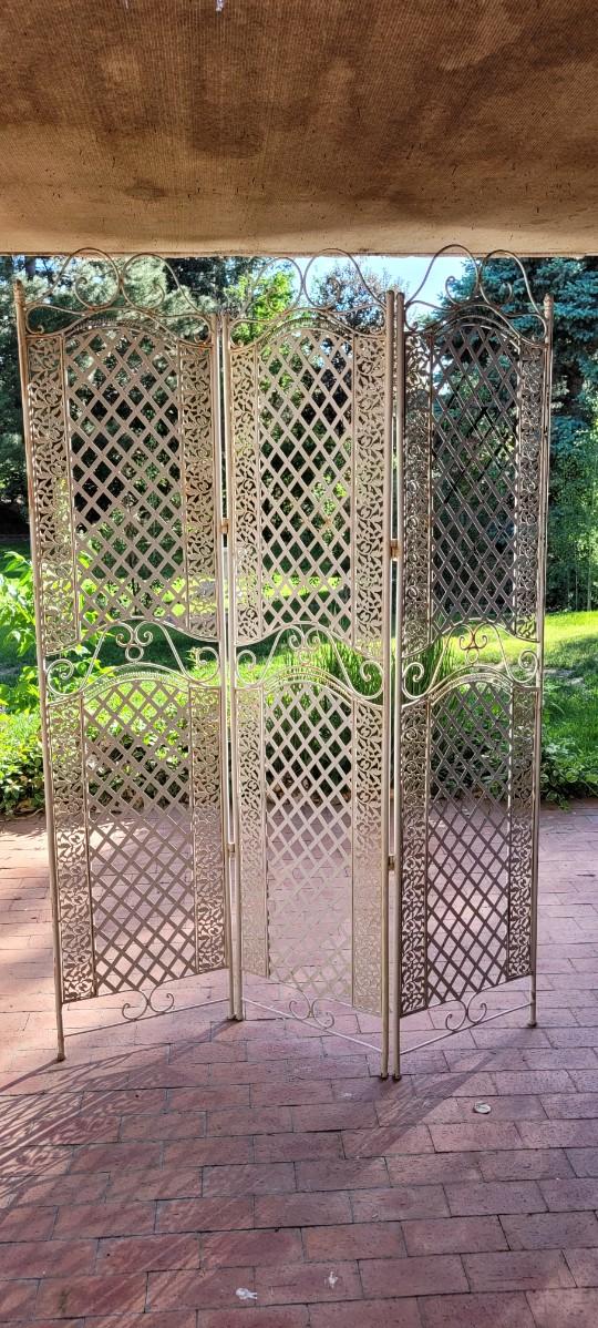 Lot 118: Large Heavy Outdoor Metal 3 Panel Screen Trellis