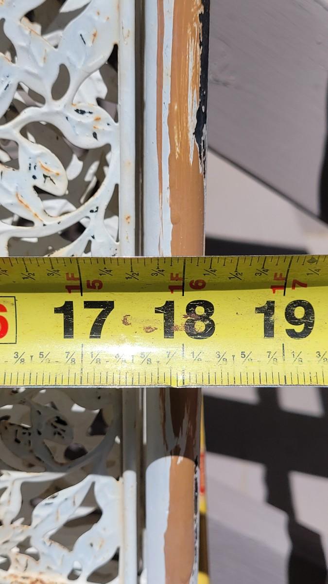 Nice Ornate metal garden barrier with floral vine theme along outer barrier. Each Panel is 18" long and 75" tall.