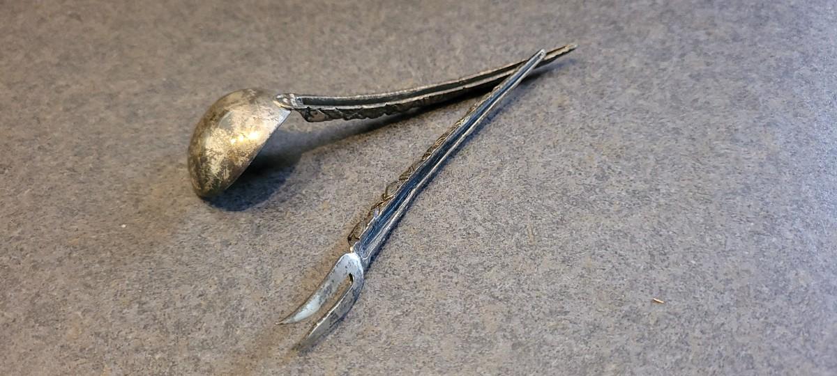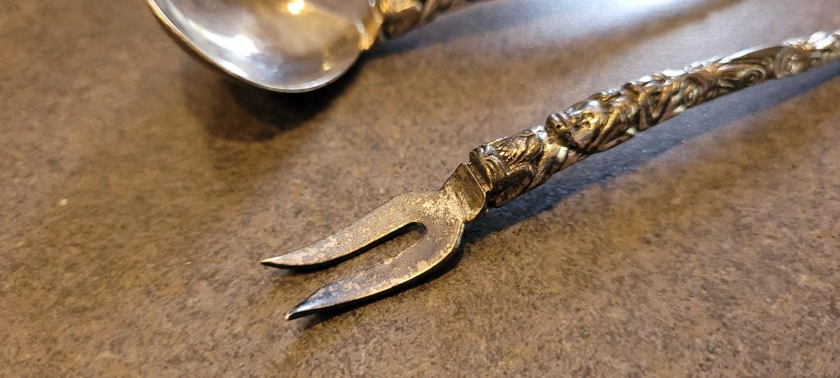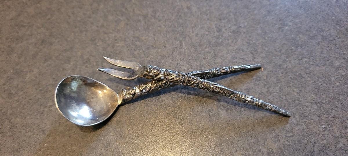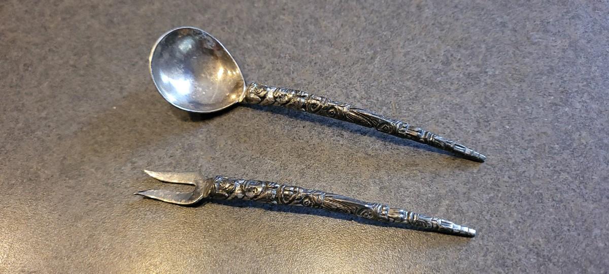 Handmade Sterling Silver Set that includes a Spoon and pronged Fork.
