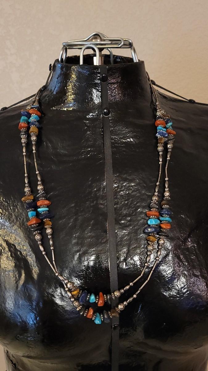 Lot 118: Vintage Liquid Silver & Multi Gemstone Necklaces (2)