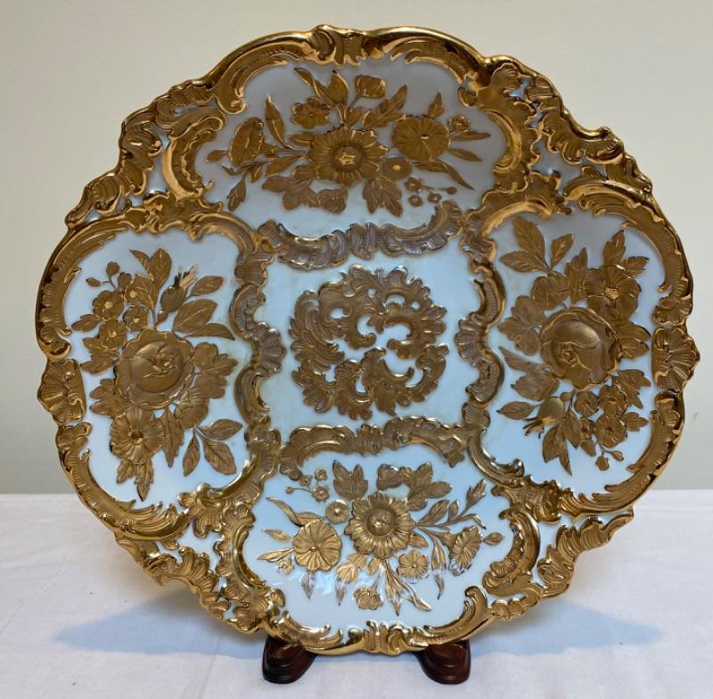 Antique Meissen White and Gold Porcelain Centerpiece Cabinet Plate