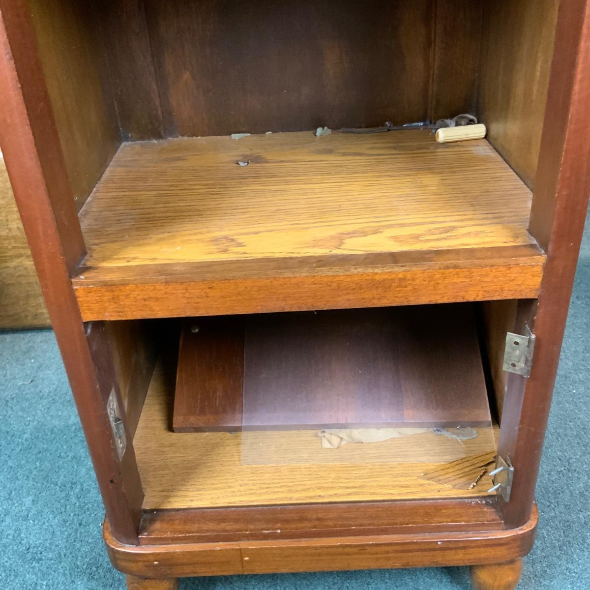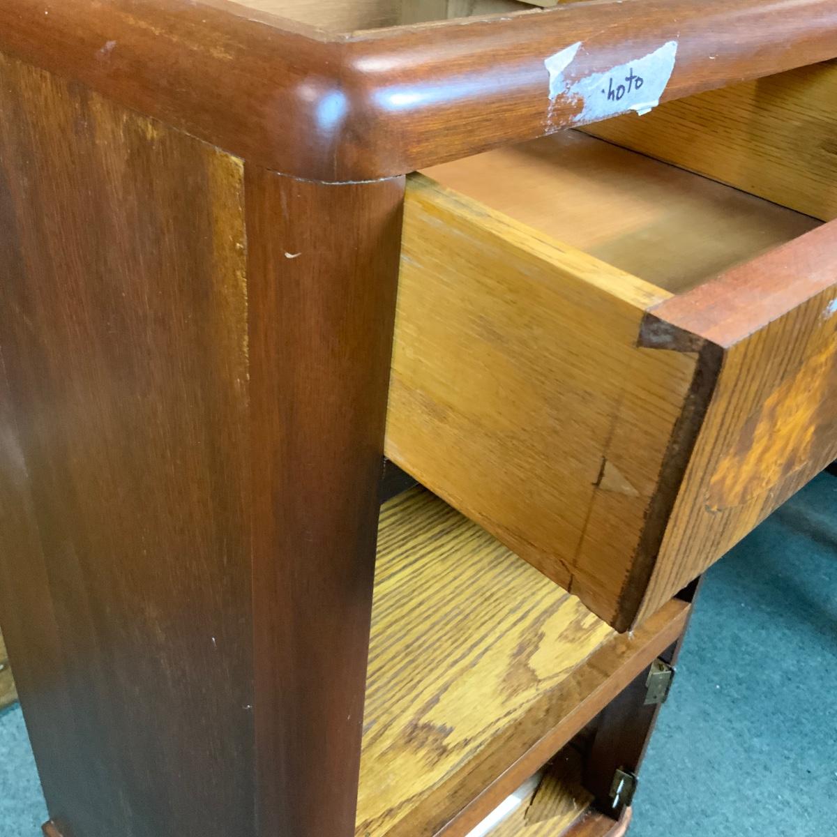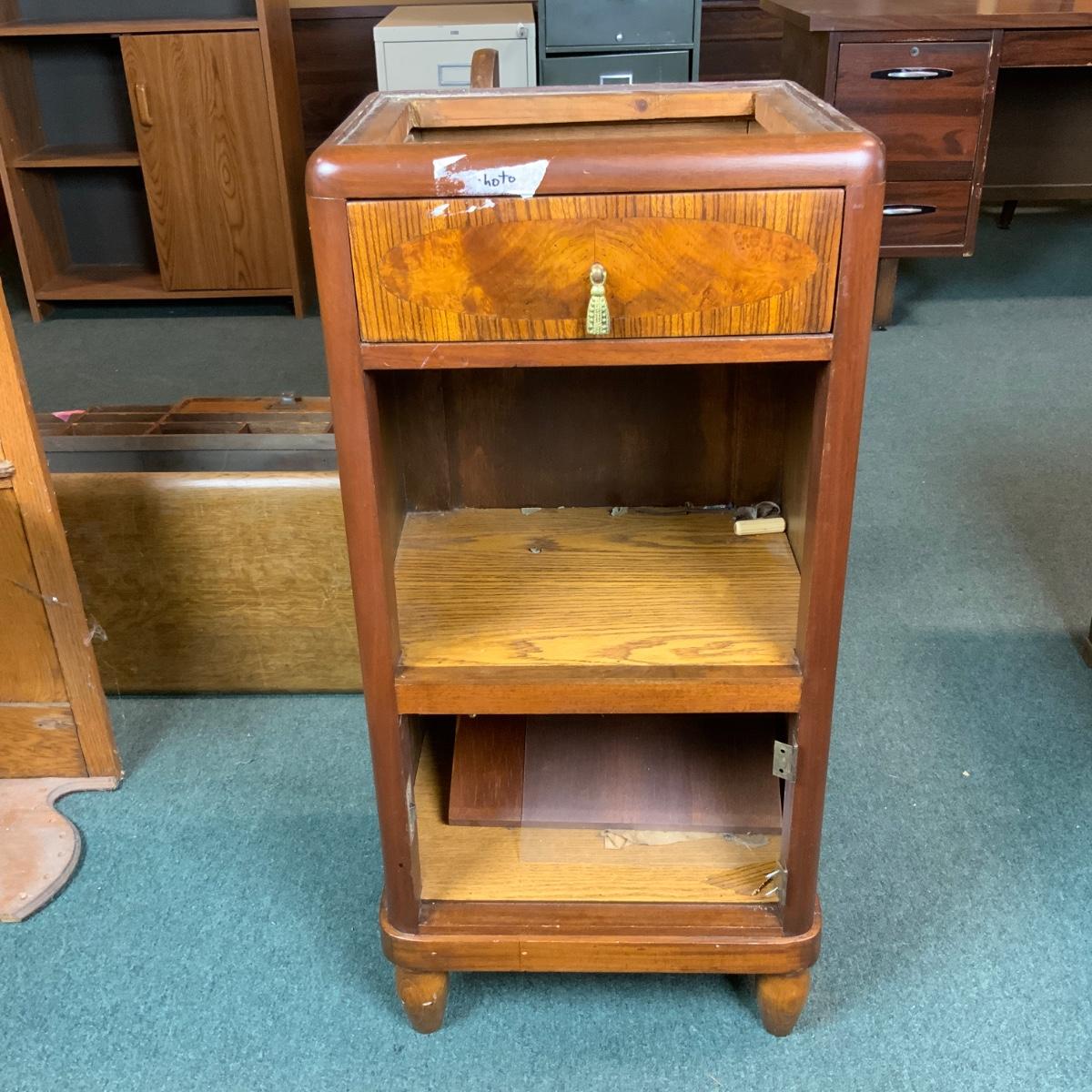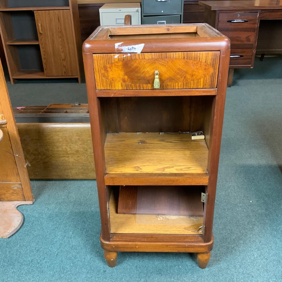 Art Deco Nightstand. Nice waterfall design. Needs a piece of marble for the top. //::\\ Please see photos for details and condition. No attempt has been made to hide any imperfections. All items listed in this auction are warehouse items, and need to be cleaned. A majority of the items need restoration as well. All items are sold AS IS and WITHOUT GUARANTEE. If you are uncertain about an item, DO NOT BID. Due to the nature of this online auction in-person inspection is HIGHLY recommended. All Sales are FINAL. Pick Up Times are FIRM. Please confirm with your own schedule that you can pick up in the scheduled times listed in the Terms and Conditions. Any questions please message the auctioneer. DO NOT Contact The Harp Gallery.