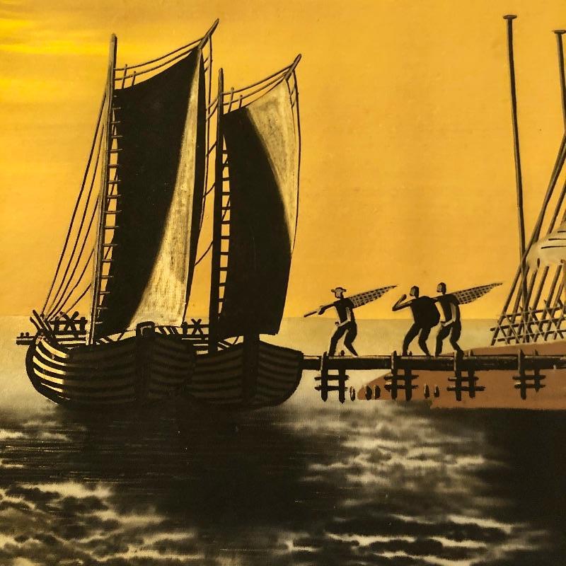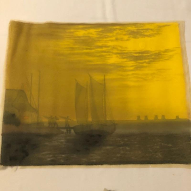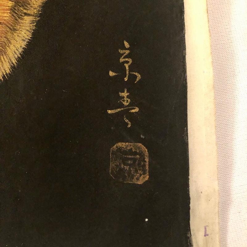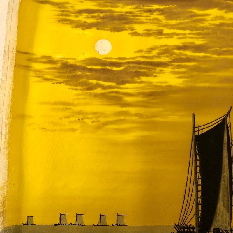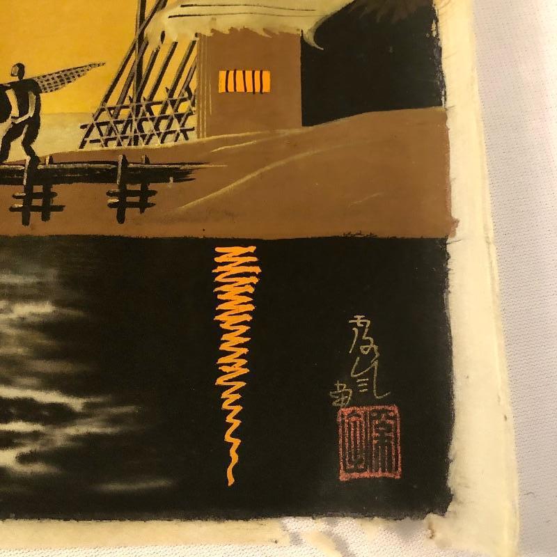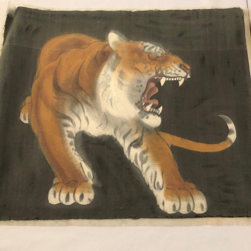Both of these pieces of artwork are uniquely stunning! The tiger painting on silk is incredibly vibrant and realistic. It appears to be signed as does the boat scene. The second silk piece depicts fishermen heading out to sea at sunrise.