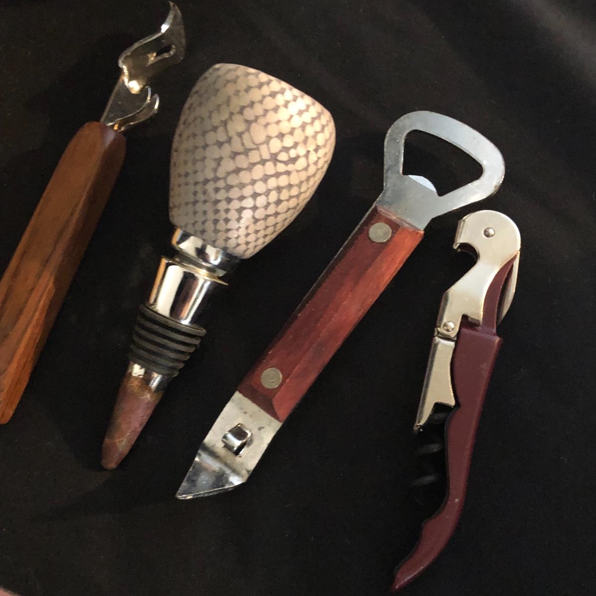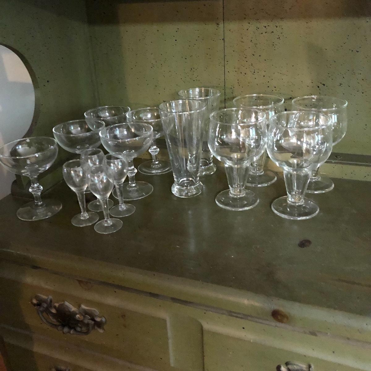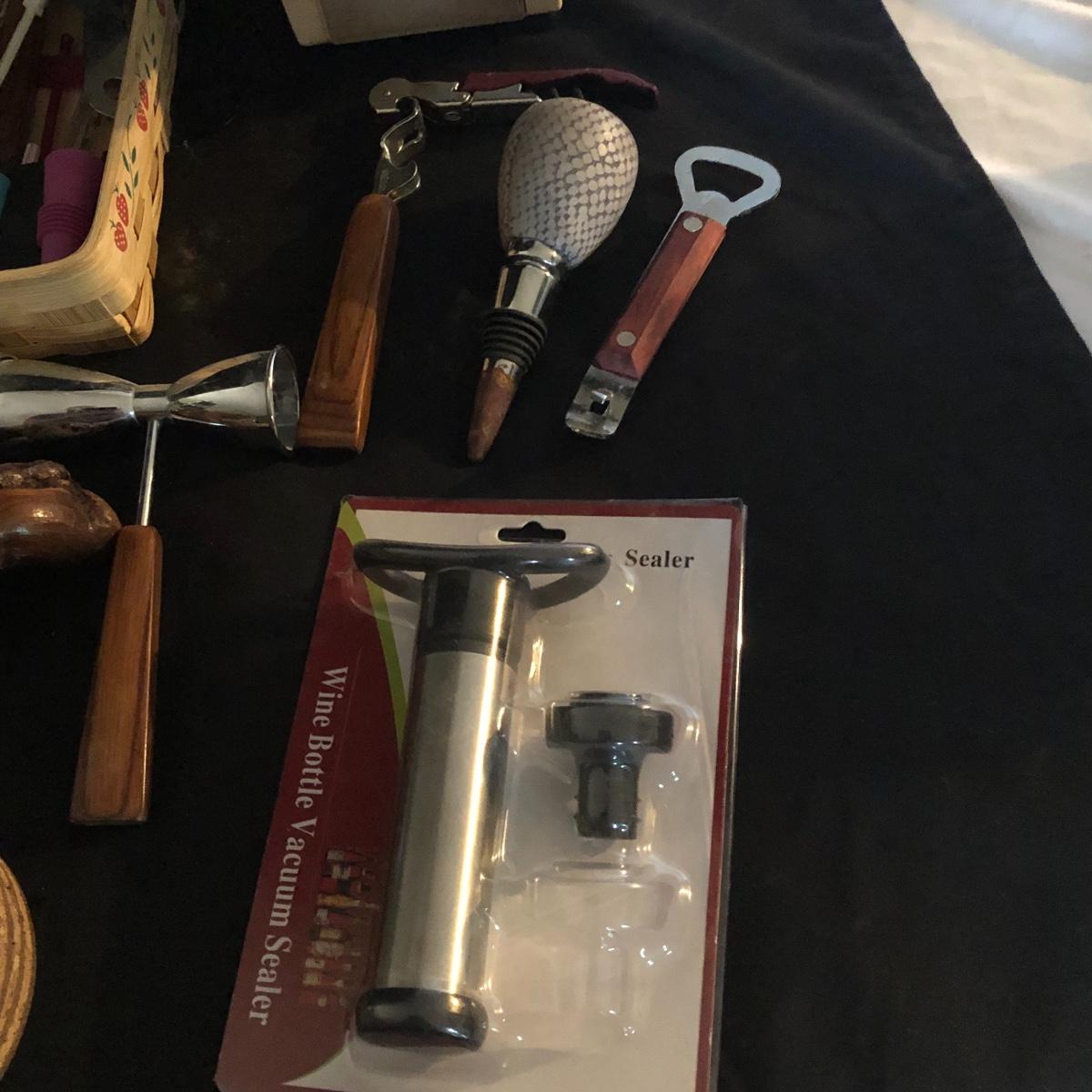 Stock your bar with this lot! It has everything you need to make a drink! There is a Panasonic ice crusher that comes with a tub to catch the ice and then a cool looking ice bucket to store it. The ice crusher powered on when its lid was lifted. This lot also includes two measuring shot glasses, three cork coasters, tree branch cork screw, jigger measure cup, bottle openers and so much more! There are also fifteen glasses of sorted sizes to compliment your bar. Local pick up only.