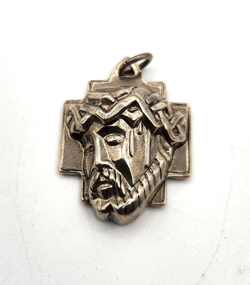 Sterling (marked) Jesus with Crown of Thorns pendant/charm. .39 grams - contemporary - good condition.