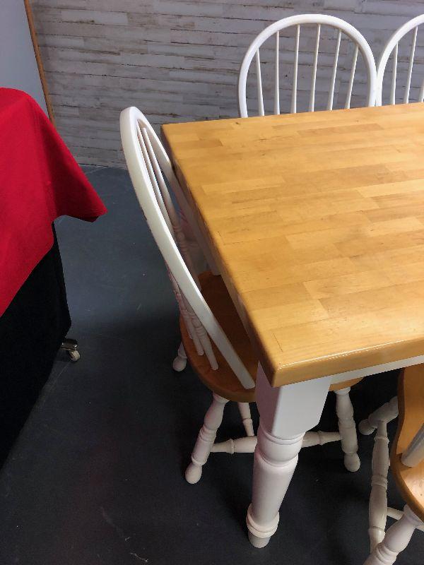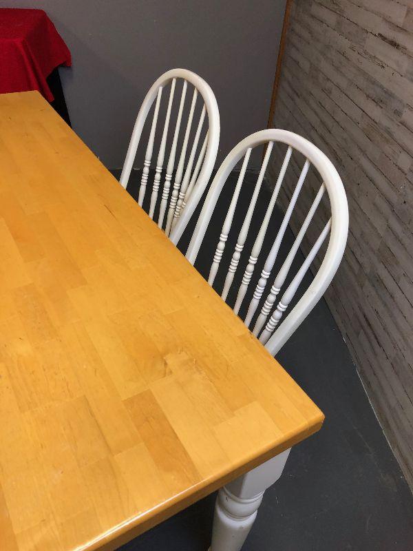Lot 118 Farm House Style White Butcher Block Table 4 chairs