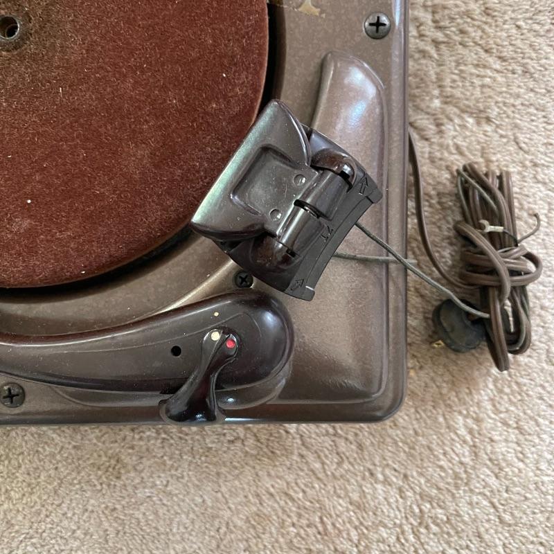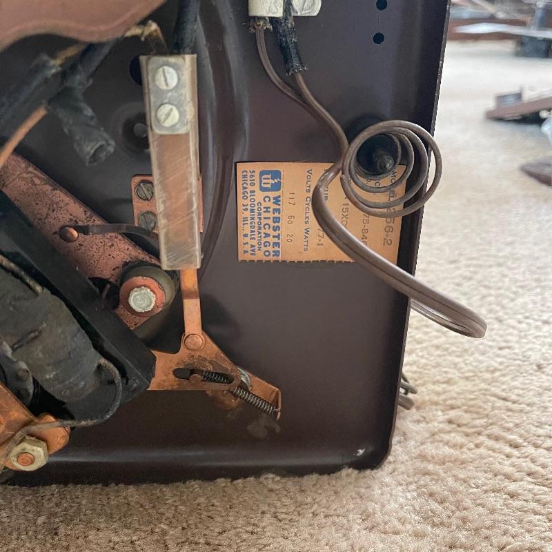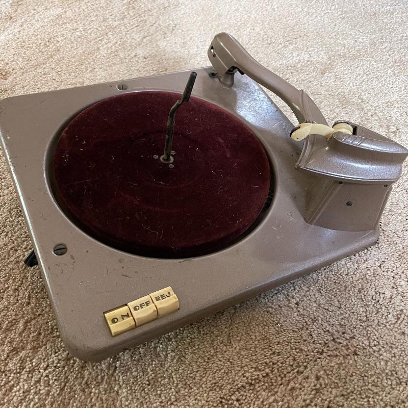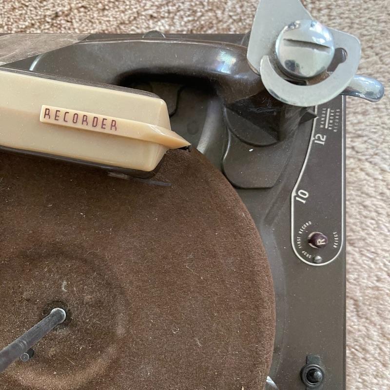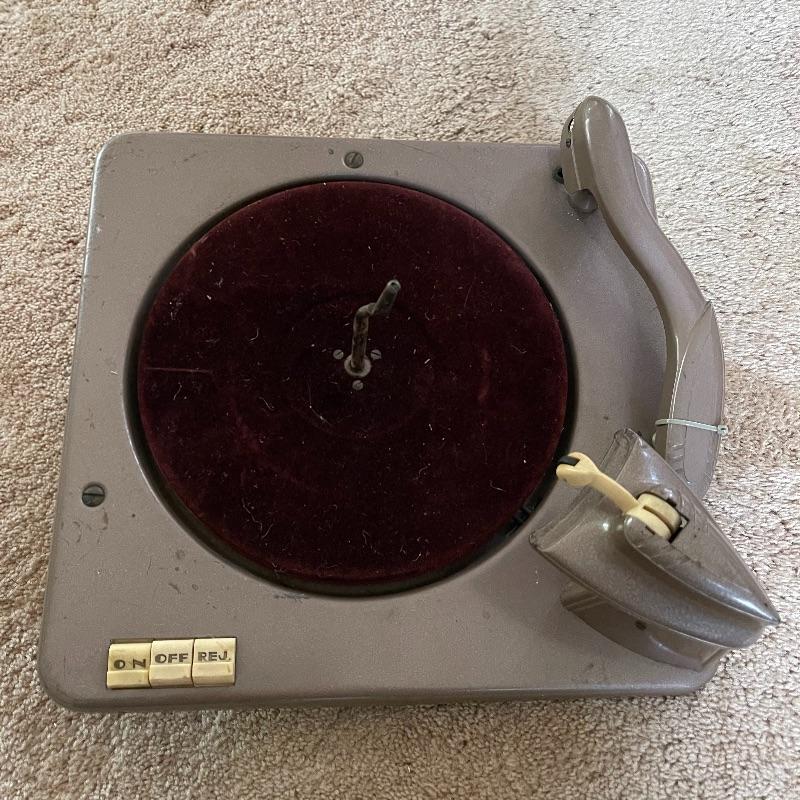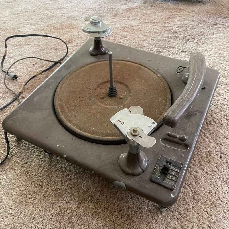 Five turntables of various brands, models, and styles. One is a Vintage Reproducer- Recorder turntable. One is marked Webster Chicago. No items were test as they don’t have plugs.