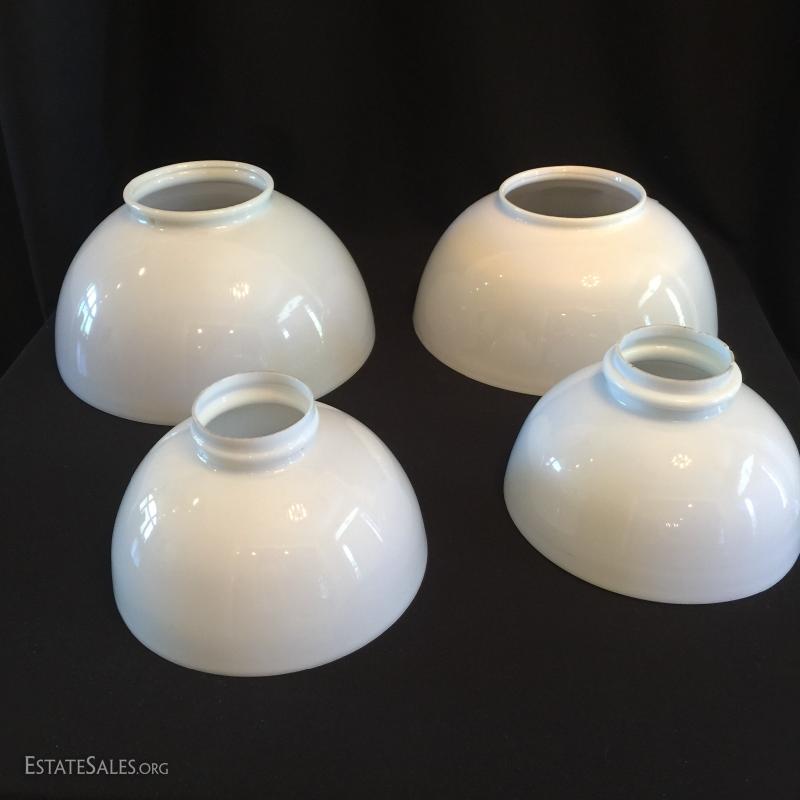 Four White lamp shades. Larger two are store bought shades. Items in this lot are available for shipping and local pick up in Hendersonville, NC.