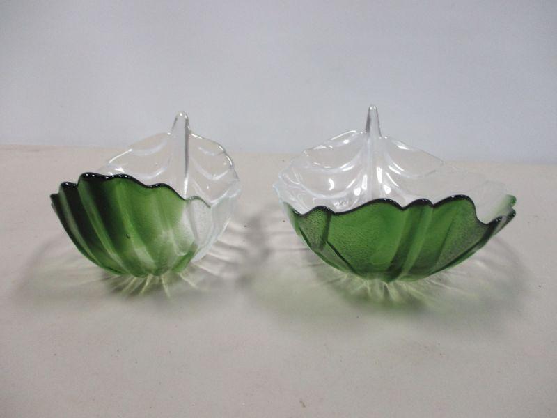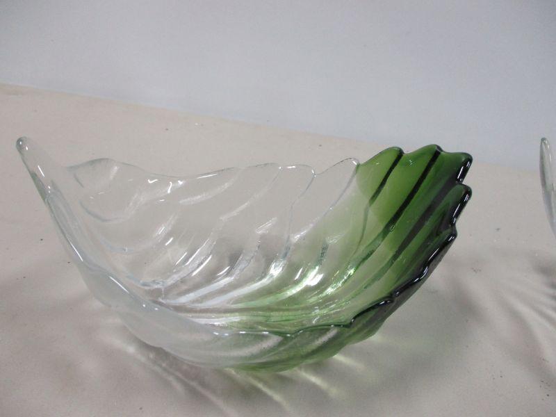 Lot 118 - Green/Clear Leaf Glass Bowls