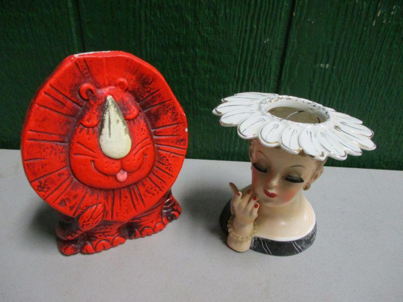 Lot 118 - Head Vase NAPCO Lady With Flower Petals & Lion