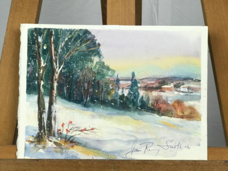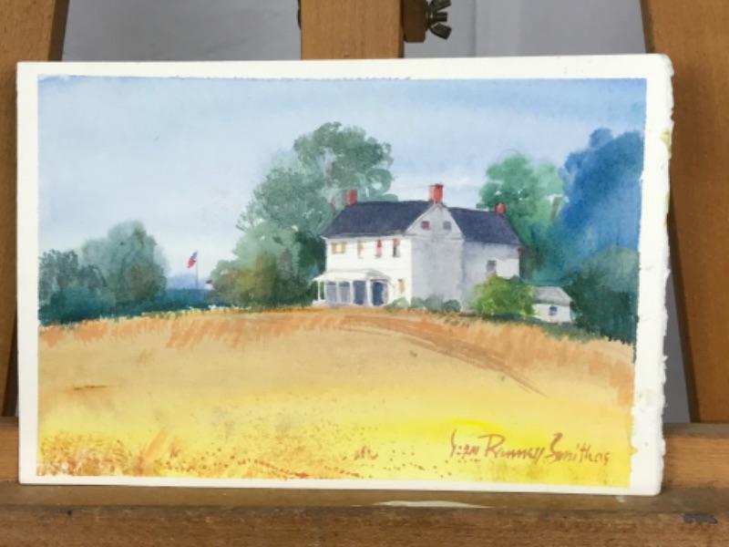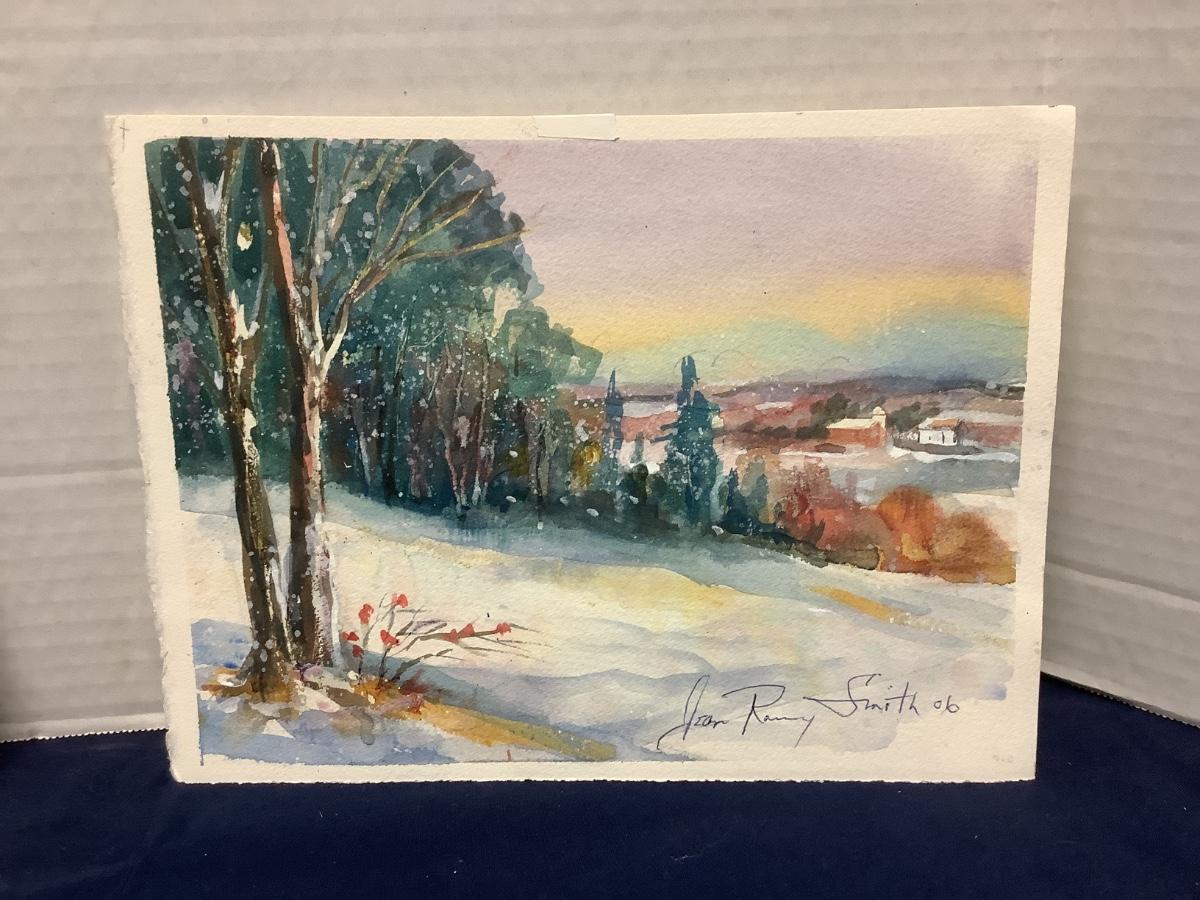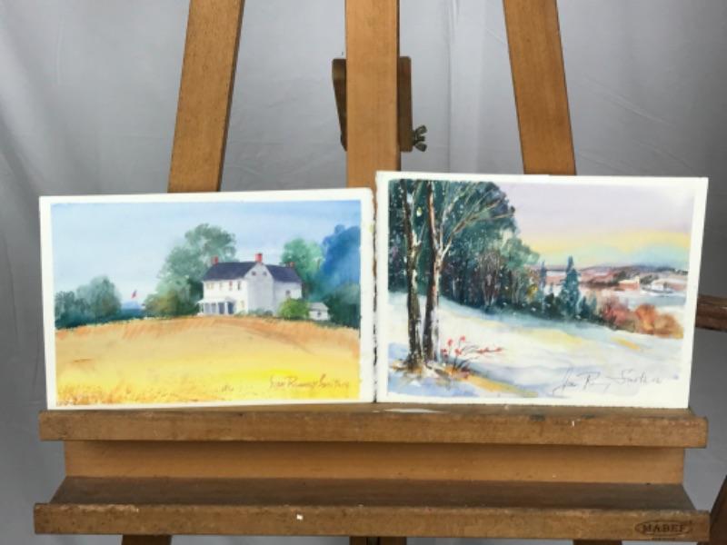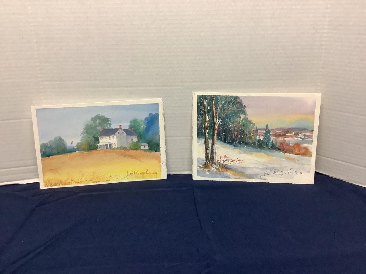 Jean Ranney Smith signed original watercolors “Farmhouse “ measures 11-1/2”z7-1/2” and “Winter Scenery” measures 11”x8”