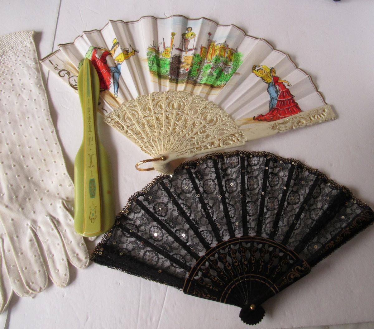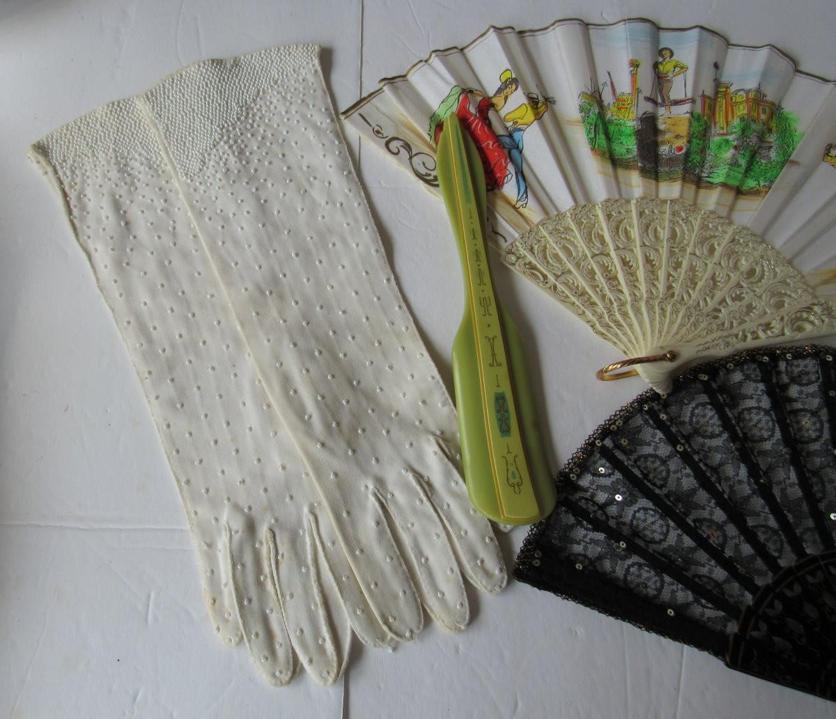 Lot 118: Vintage Ladies Lot, Fans, Shoe Horn, Gloves
