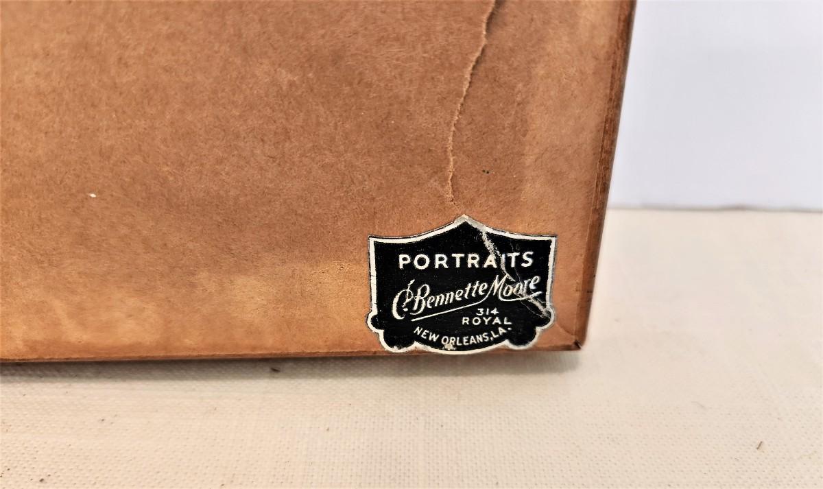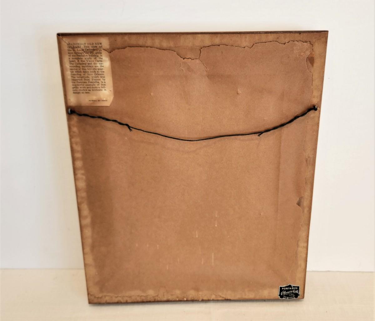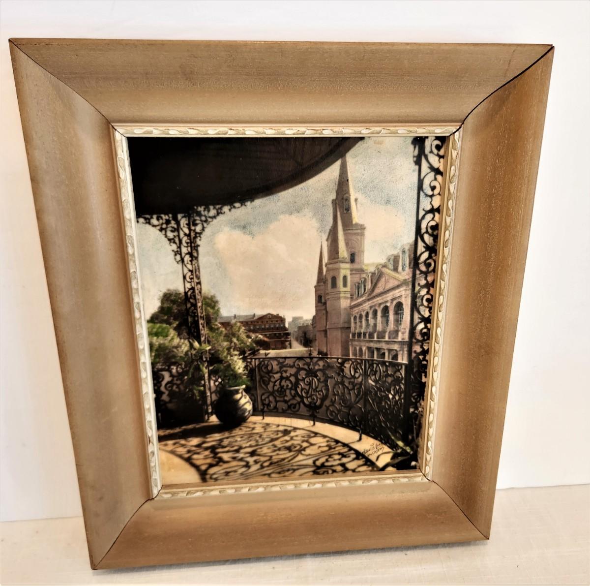 Great condition - has labels from his French Quarter shop - framed, hand-tinted photo from the studio of C. Bennett Moore entitled "Shadows of Old New Orleans." 11.5" across, 14" tall.