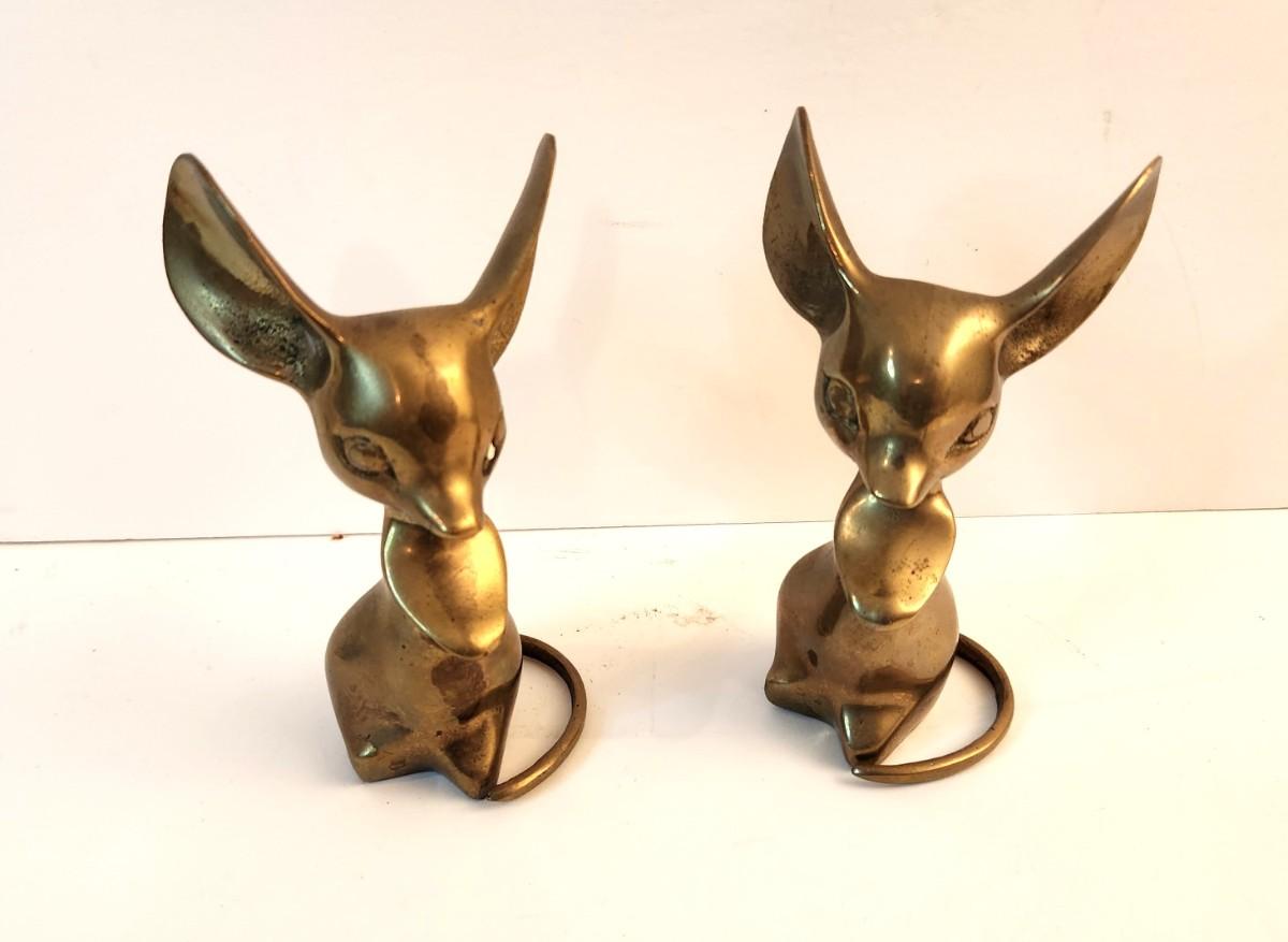 Cute pair of Mid Century Modern Brass mice with BIG ears. Heavy. Each 5" tall.