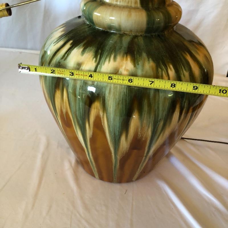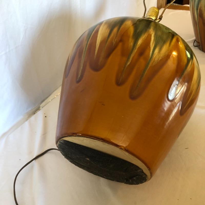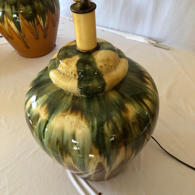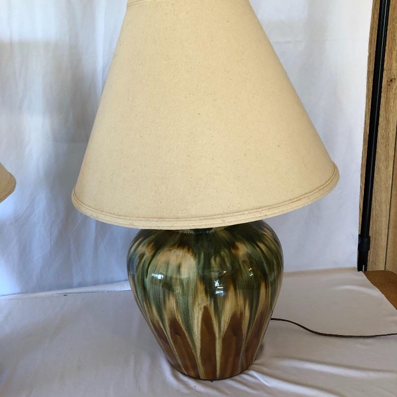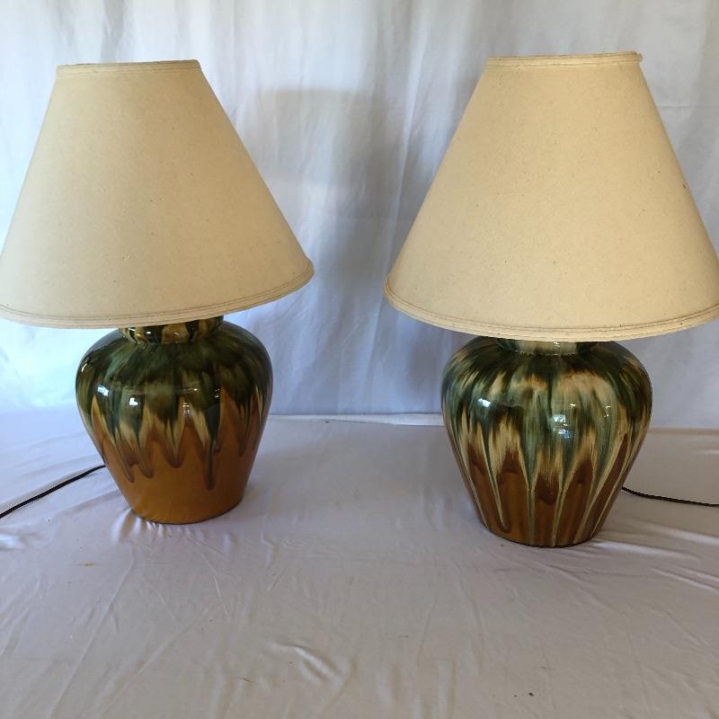Add a flair of color to your home with this pair of unique ceramic lamps! They are 10” wide and 27” in height (to the top of the shade). Local pick up only. Powered on when tested.