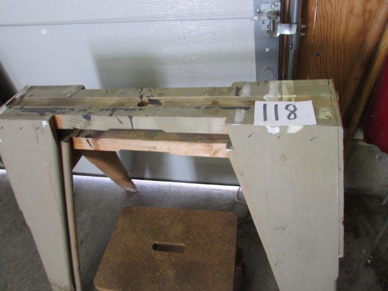 LOT 118 SAW HORSES AND STOOL ON CASTERS
