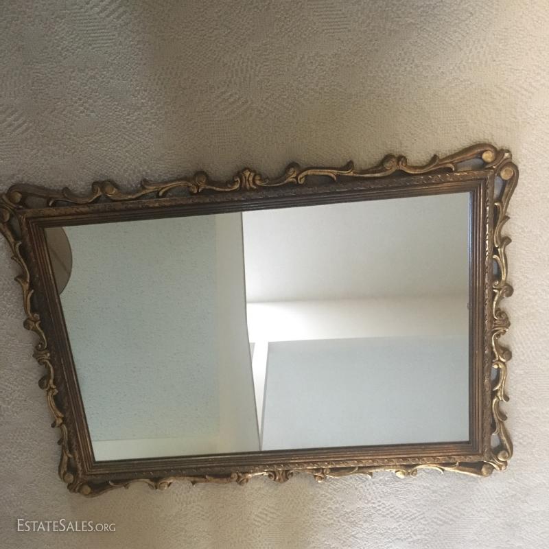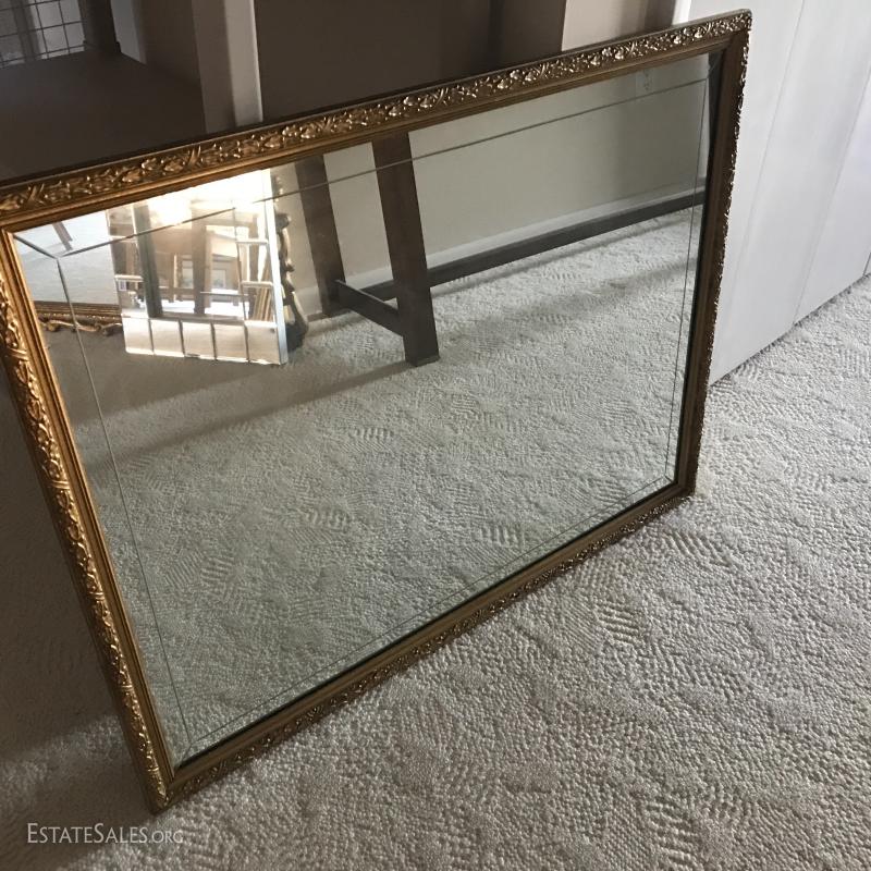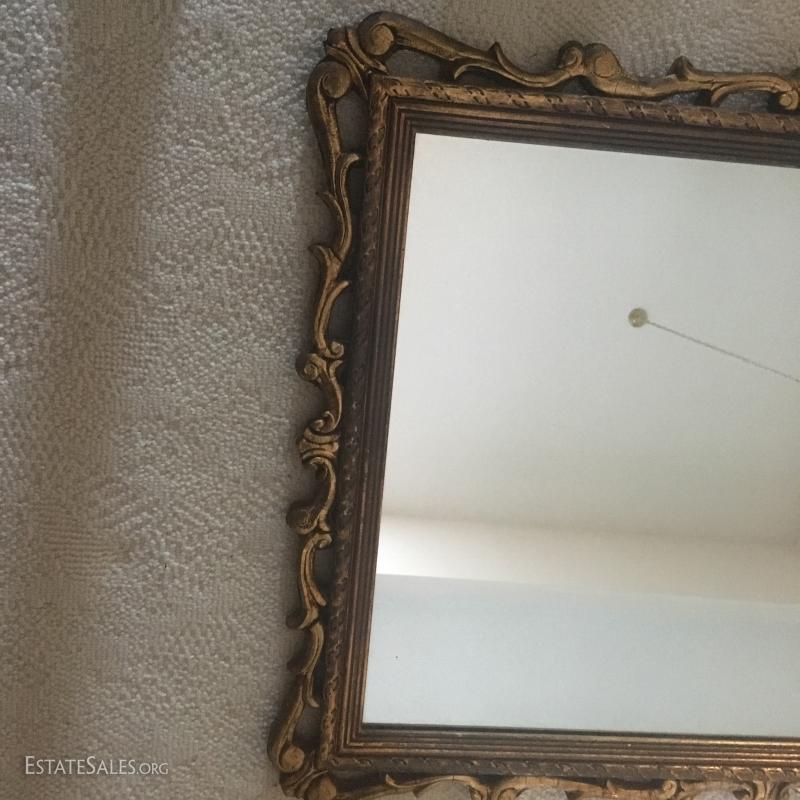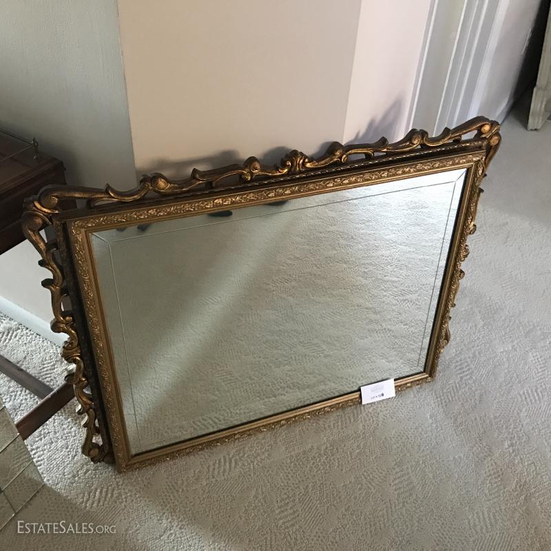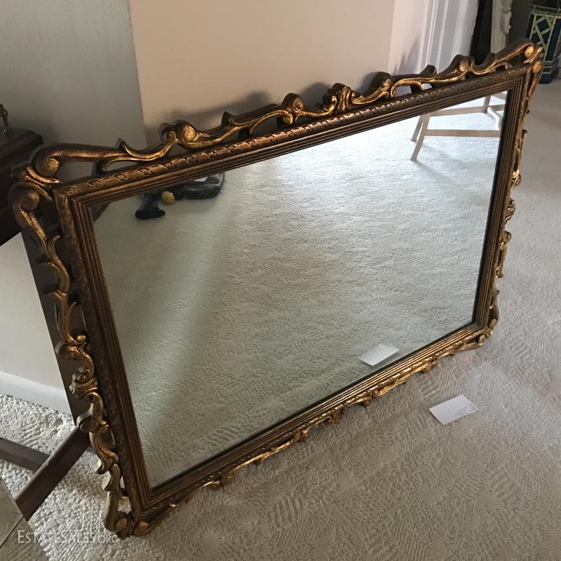 Large Ornate, gold framed mirror: 43" L x 31" W
