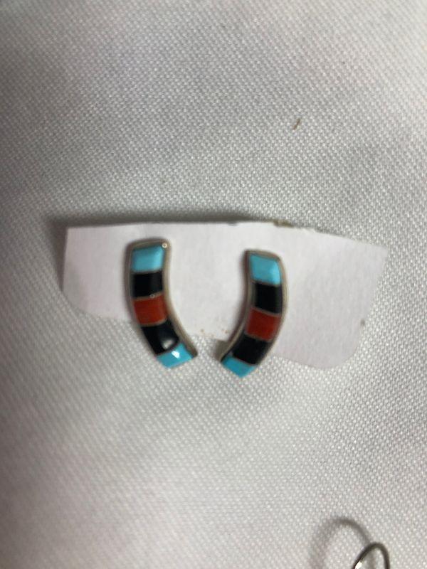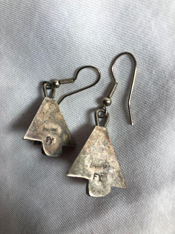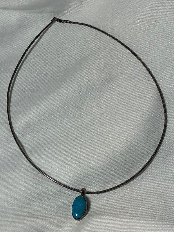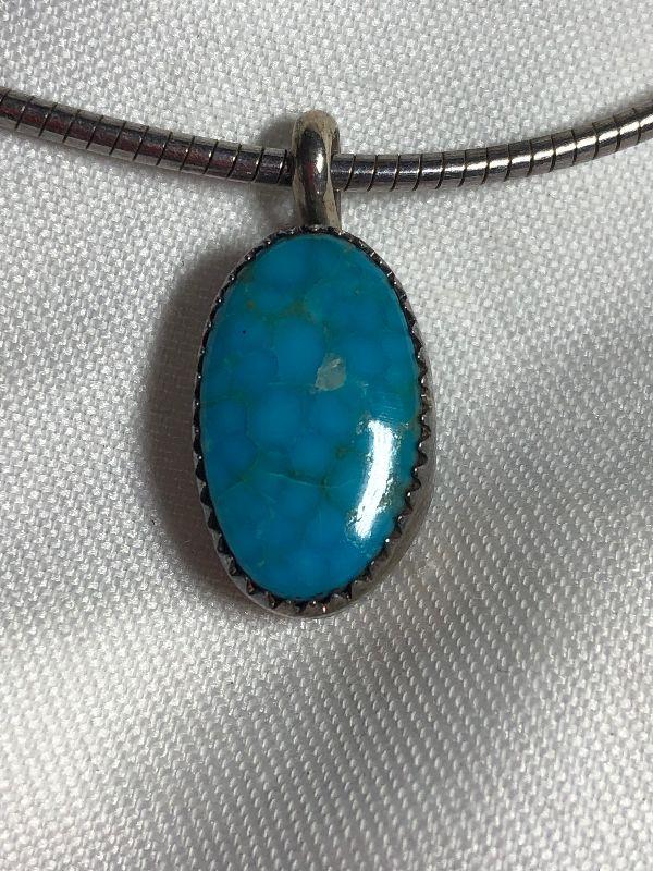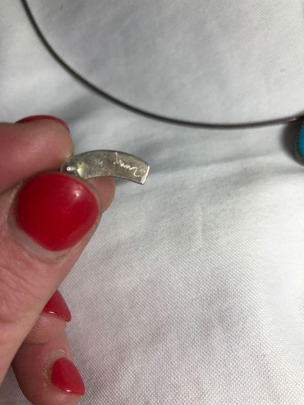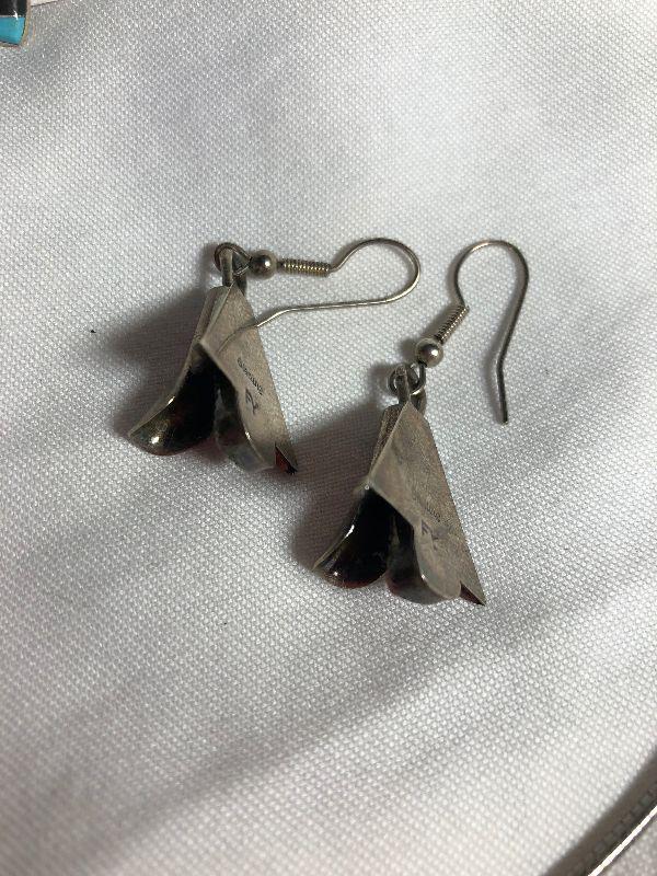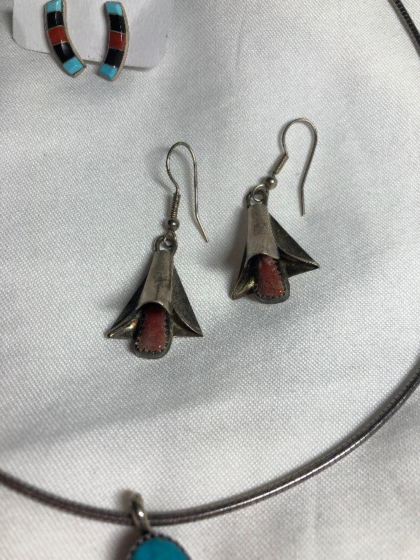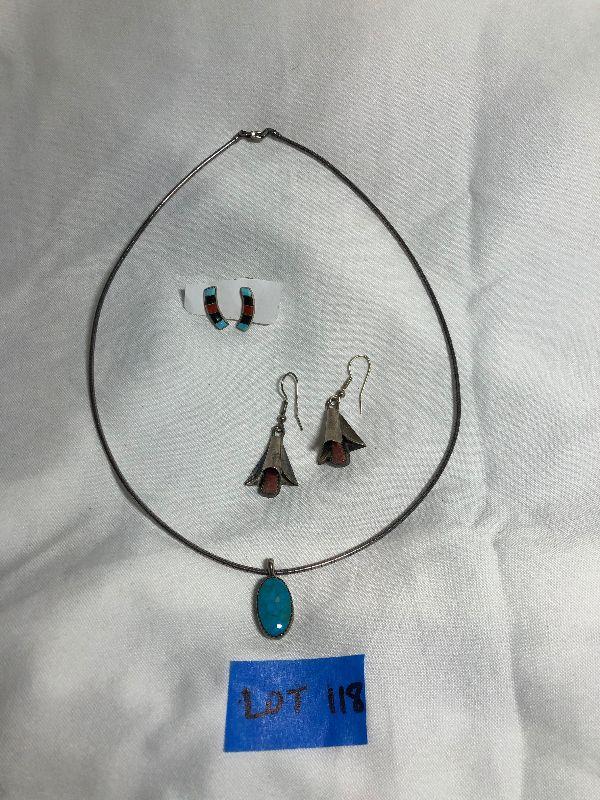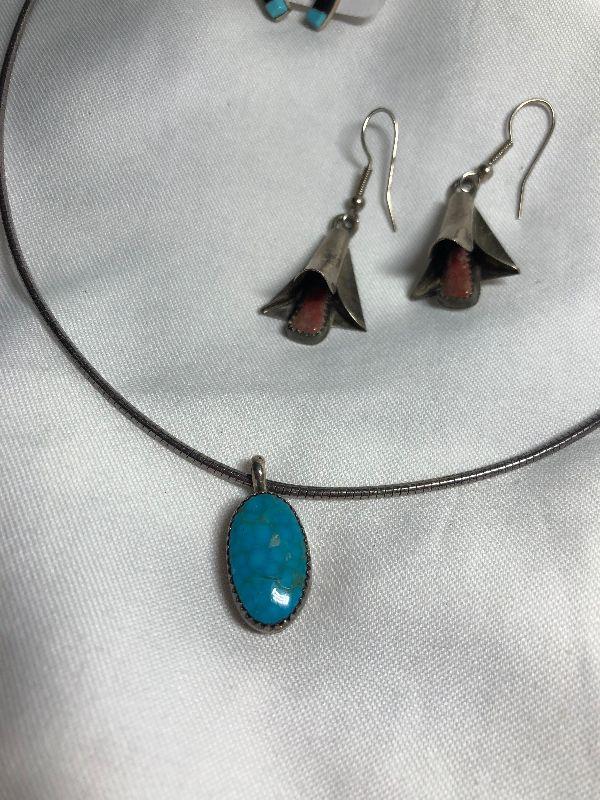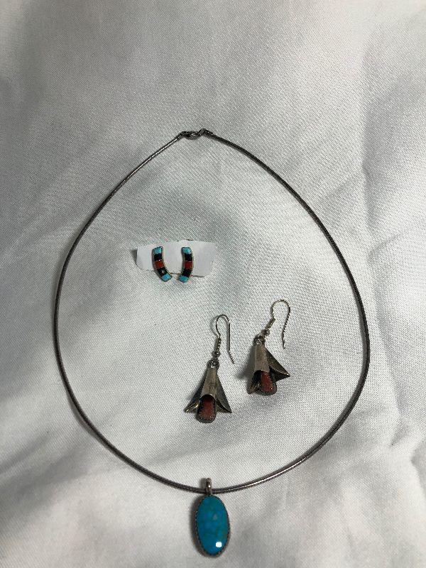 Turquoise and Sterling Silver Necklace, Sterling Silver Earrings (Signed by Artist) and Sterling Silver Dangle Earrings