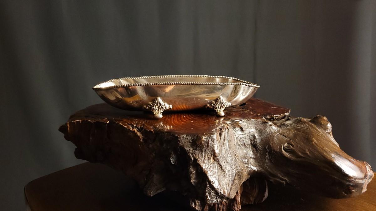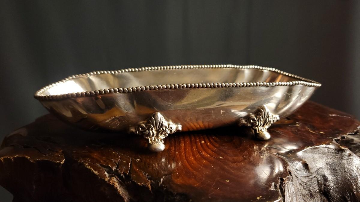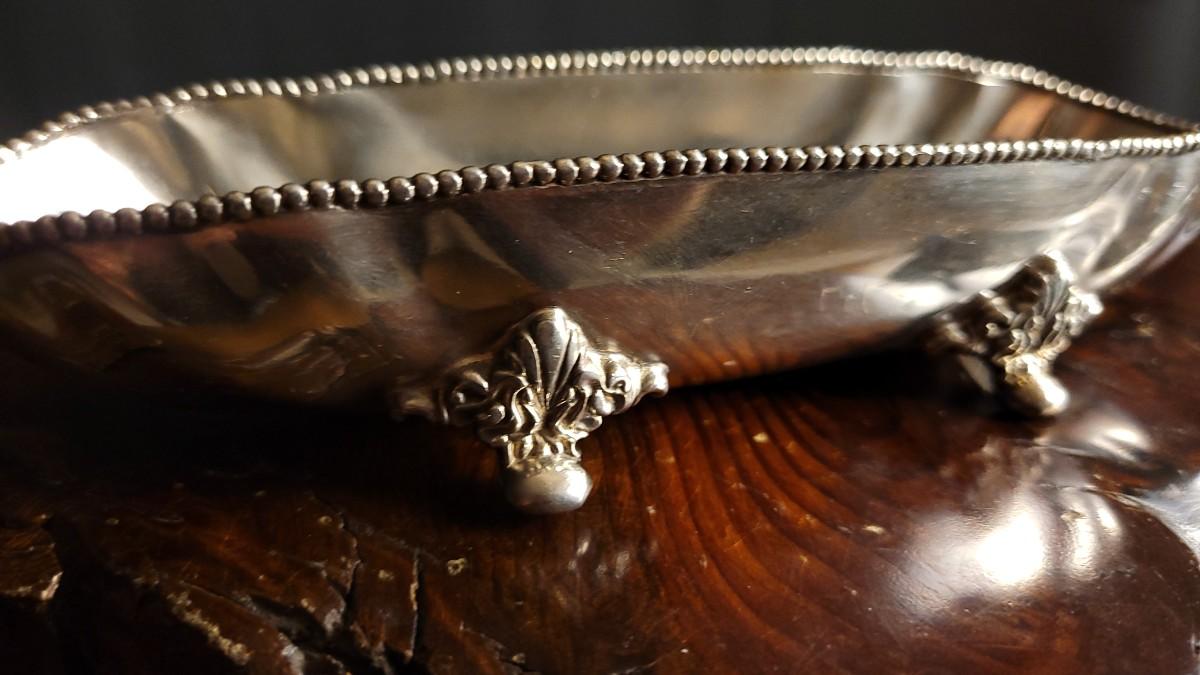 Lot 118: Vintage VAN BERGH Quadruple Plated Serving Dish w/ Ornate Feet