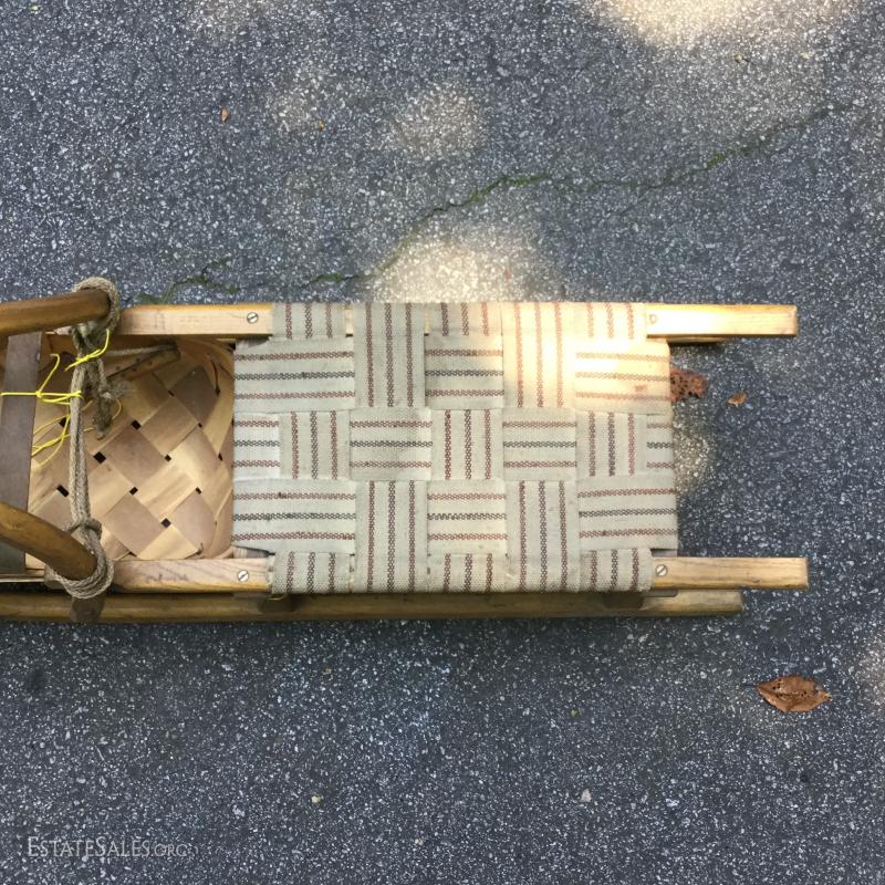 Vintage sled. 40"w x 11"l. Has a fruit basket attached with a small rope. Can easily be detached.