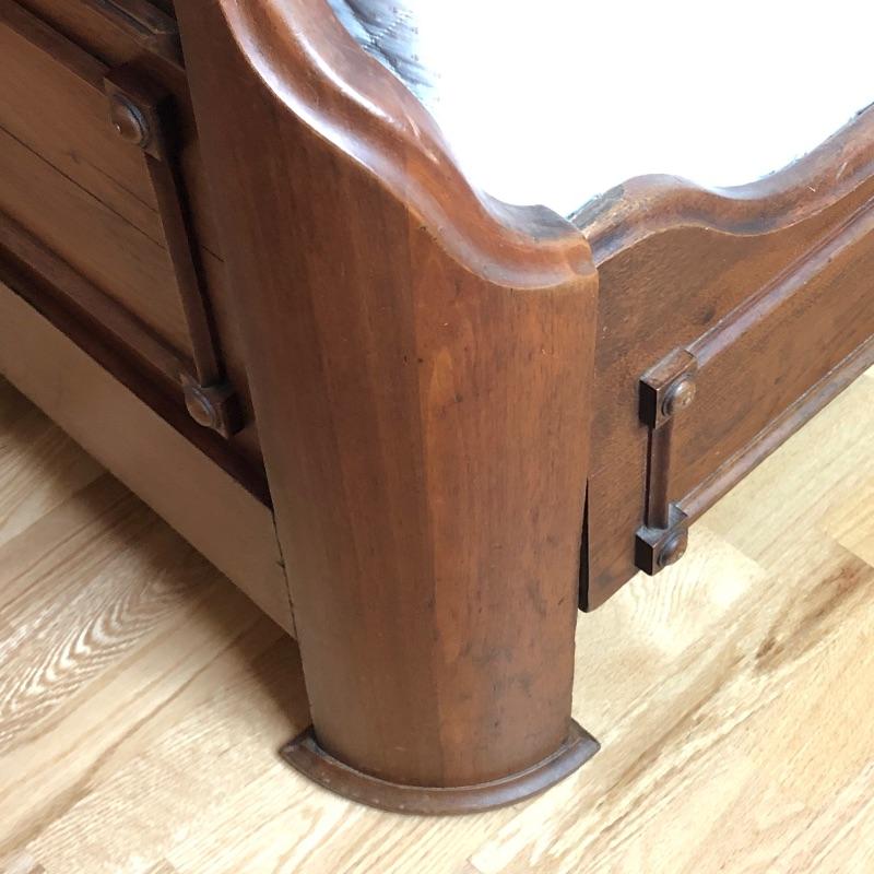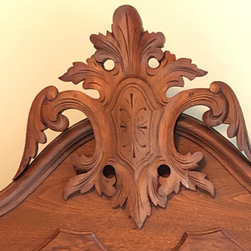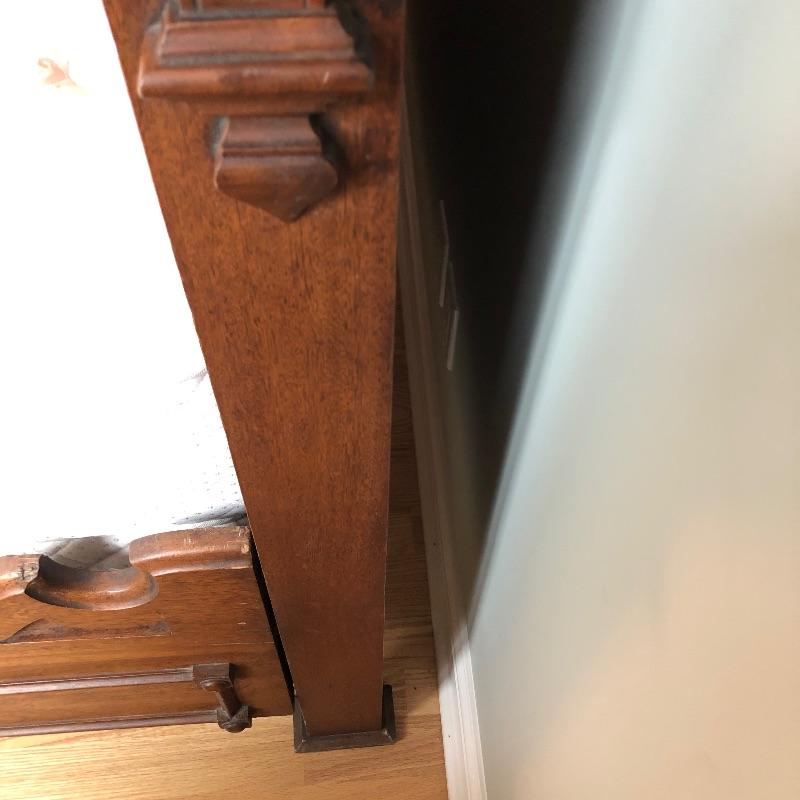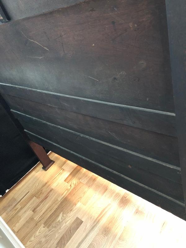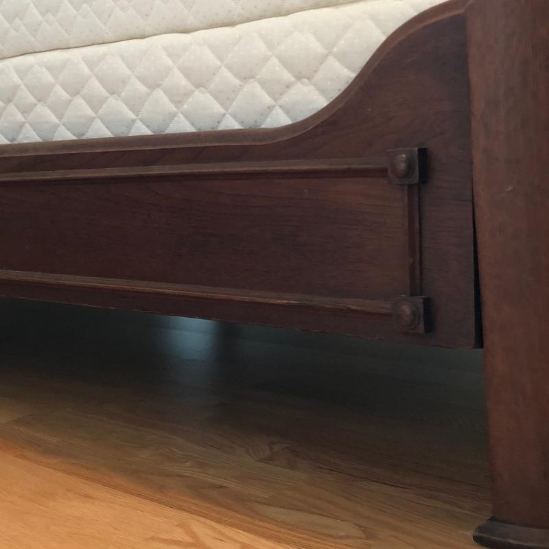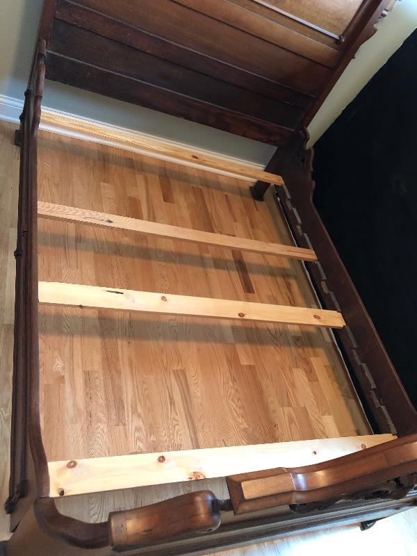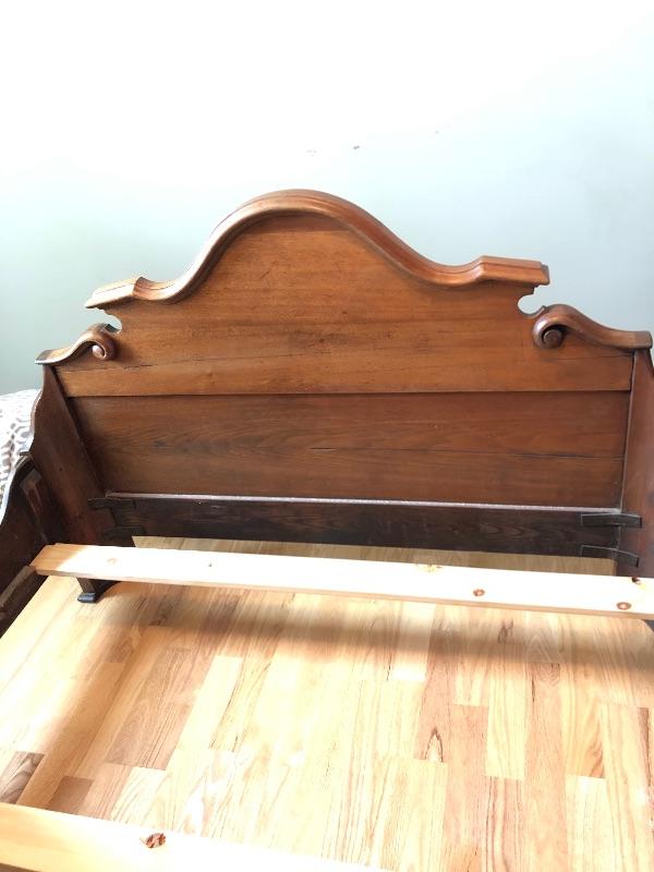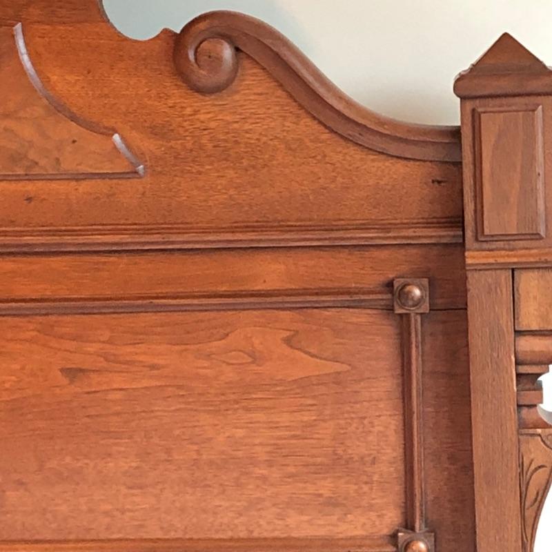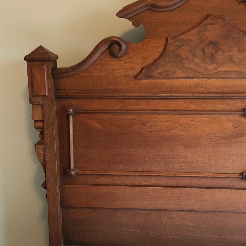 Amazing solid wood headboard and footboard for double sized mattress and box spring. Beautiful detailing and design throughout with only minor blemishes see photos. Lots 113 & 122 will complete this set.