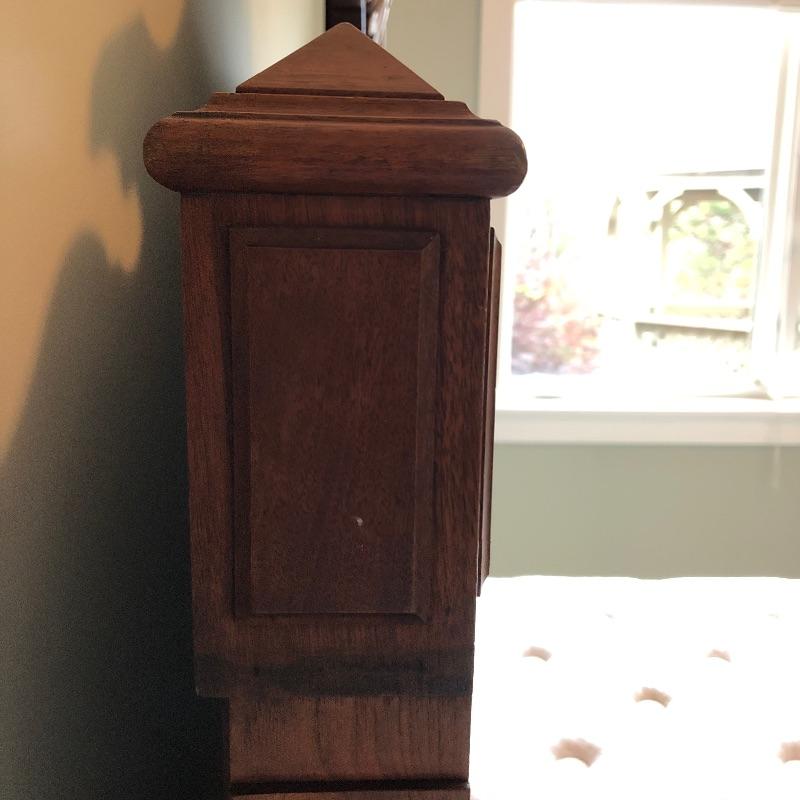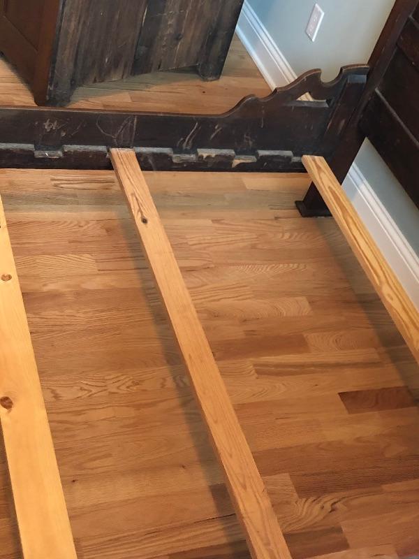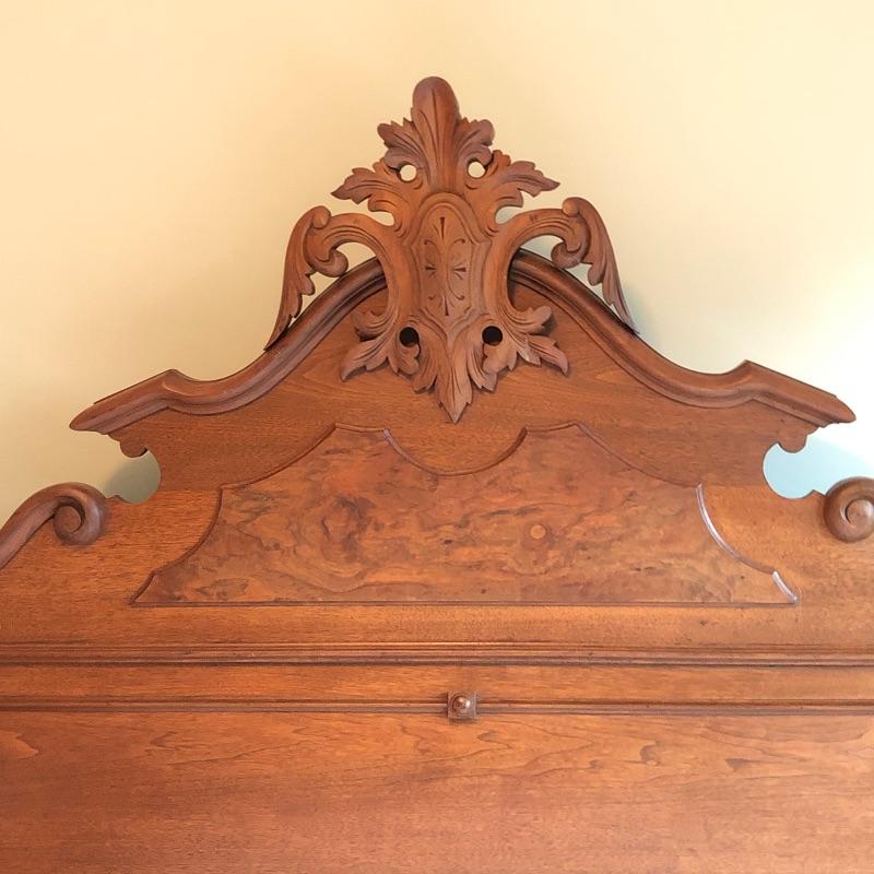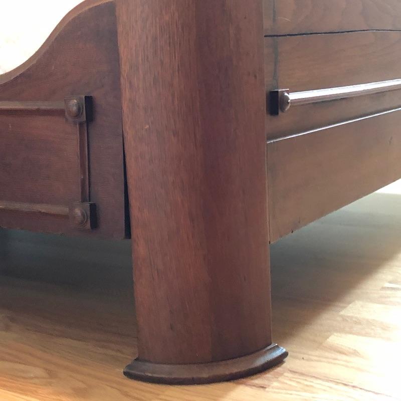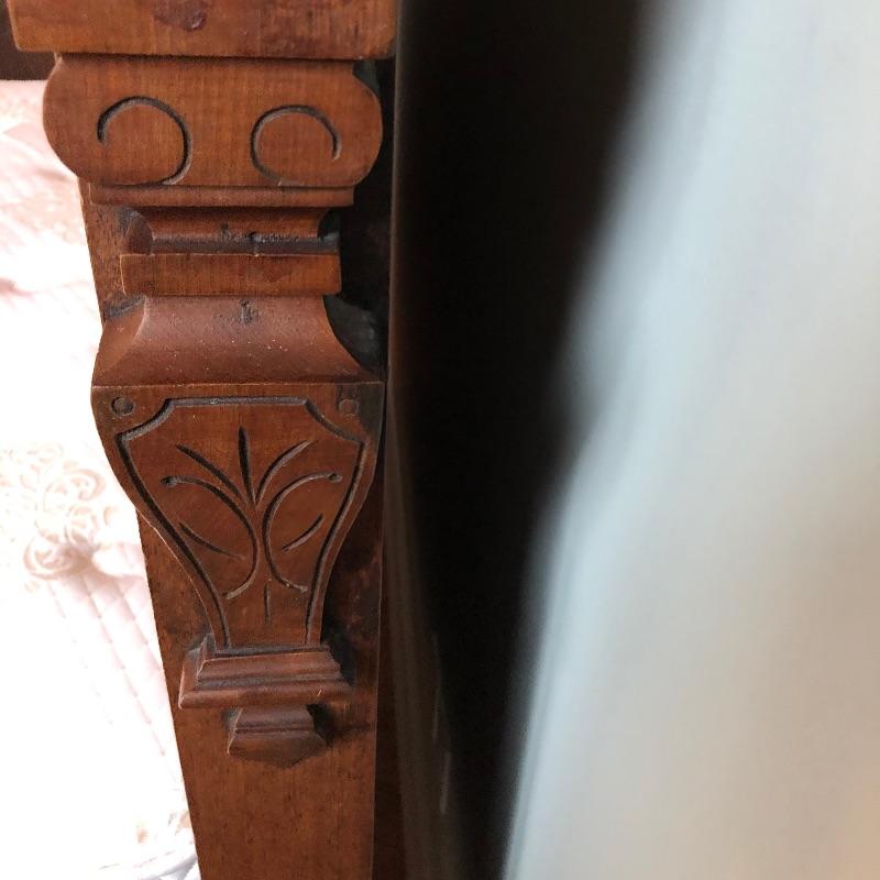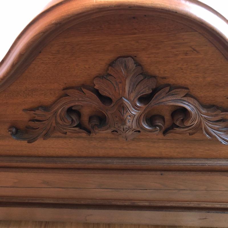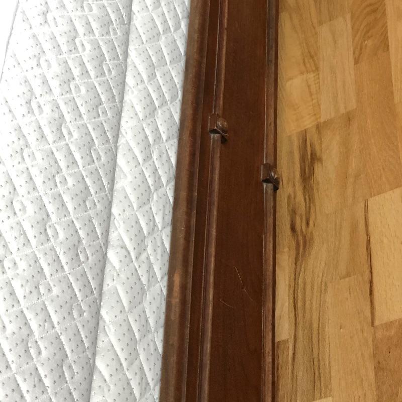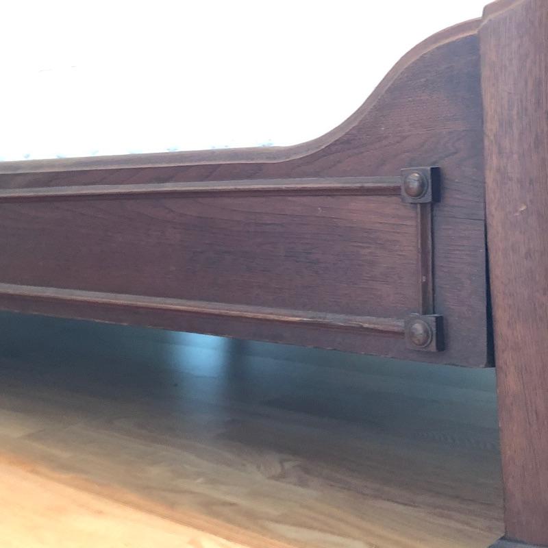 Amazing solid wood headboard and footboard for double sized mattress and box spring. Beautiful detailing and design throughout with only minor blemishes see photos. Lots 113 & 122 will complete this set.