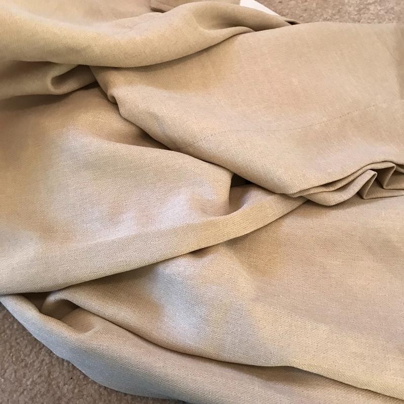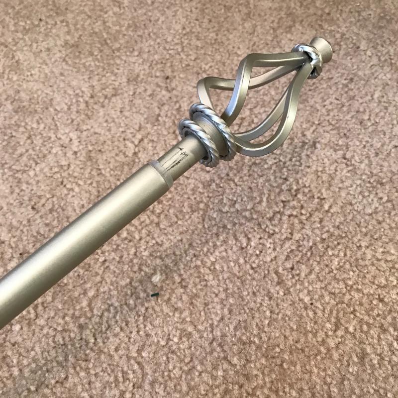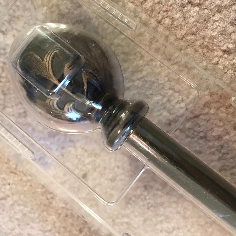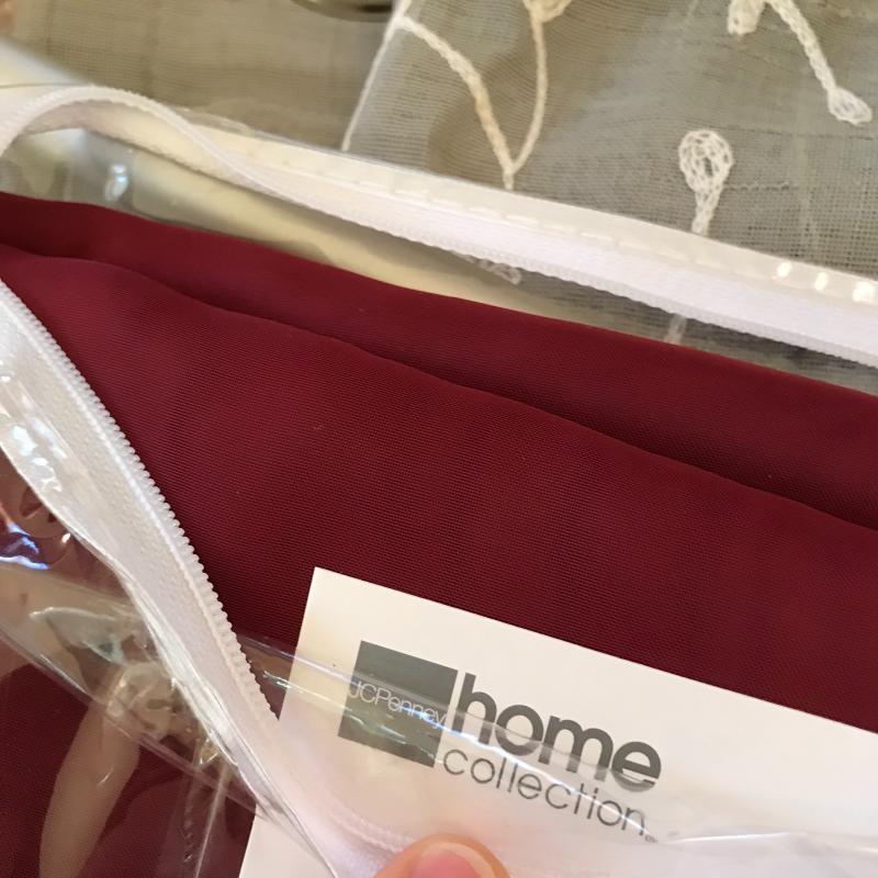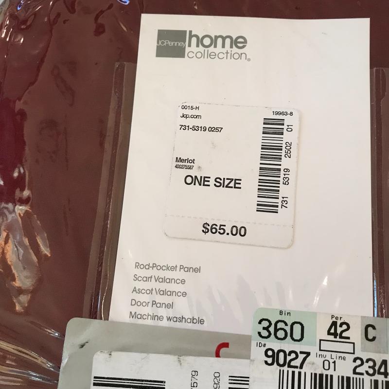 This lot includes two decorative curtain rods with hardware (one new in packaging with retail price of $25), one deep red curtain panel (new in packaging with retail price of $65), two sage green curtain panels with vine embroidery, approx. 84” long x 50” wide, and two sand-colored blackout curtains, approx. 80” long x 55” wide.