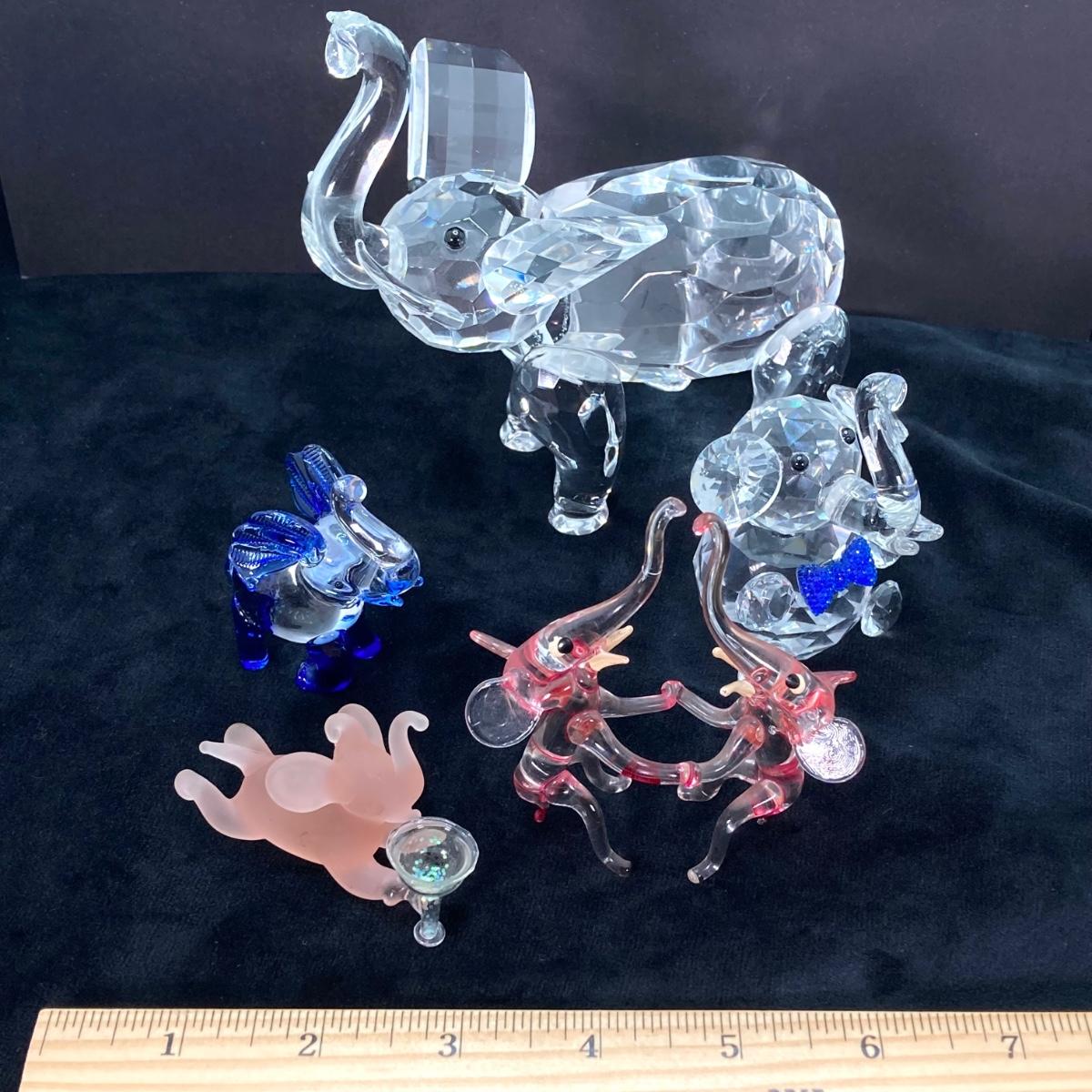 LOT 40: Collection of Crystal / Frosted Glass Elephant Figurines - Shannon Crystal and More