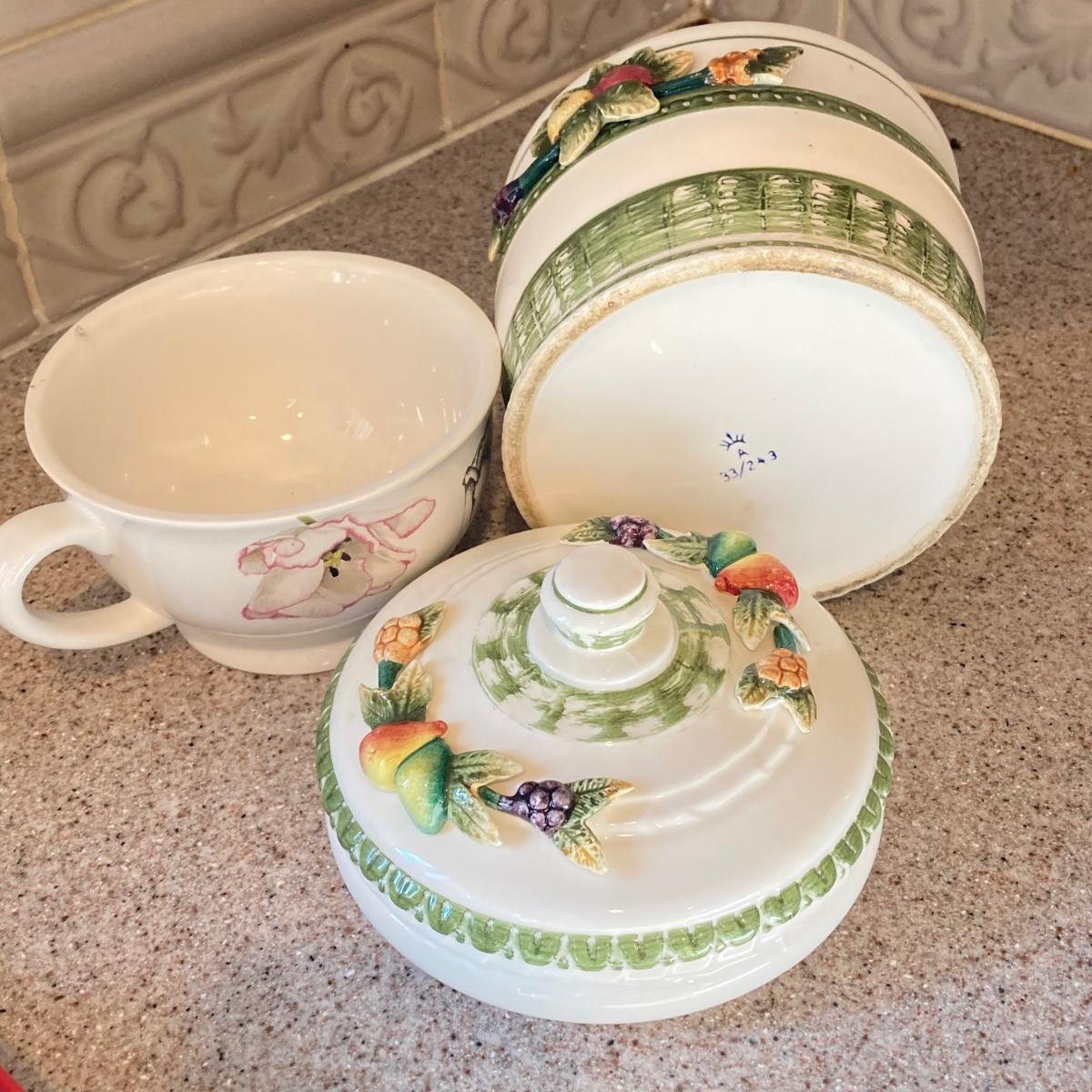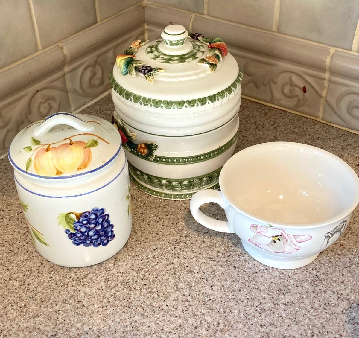LOT 48: Kitchen Essentials - The Premier Woman Measuring Cups, Mom's Diner Napkin Holder / Butter Dish, Canisters, Towels and More